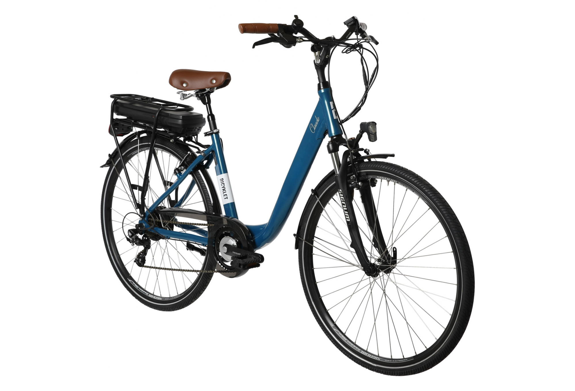 Que cela soit pour vous rendre au travail, pour faire quelques courses en ville ou tout simplement pour aller prendre l’air, le vélo de ville électrique BICYKLET CLAUDE SHIMANO TOURNEY sera toujours partant. Son design de cadre ouvert le rend à la fois plus accessible et plus maniable, mais aussi plus adapté aux arrêts fréquents en ville, il conviendra aussi bien aux hommes qu’au femmes. Ses porte-bagages avant et arrière, ses garde-boues, sa béquille latérale et son système d’éclairage intégré font de lui un compagnon à deux-roues polyvalent, fiable et ludique. Le moteur Bafang, robuste et efficace, est situé dans le moyeu arrière et améliore considérablement le confort de conduite. Grâce à sa batterie de 500 Wh, intégrée au porte-bagages arrière, le Claude dispose d’une autonomie allant jusqu’à 125 km et permet de rouler jusqu’à 25 km/h (avec l’assistance).