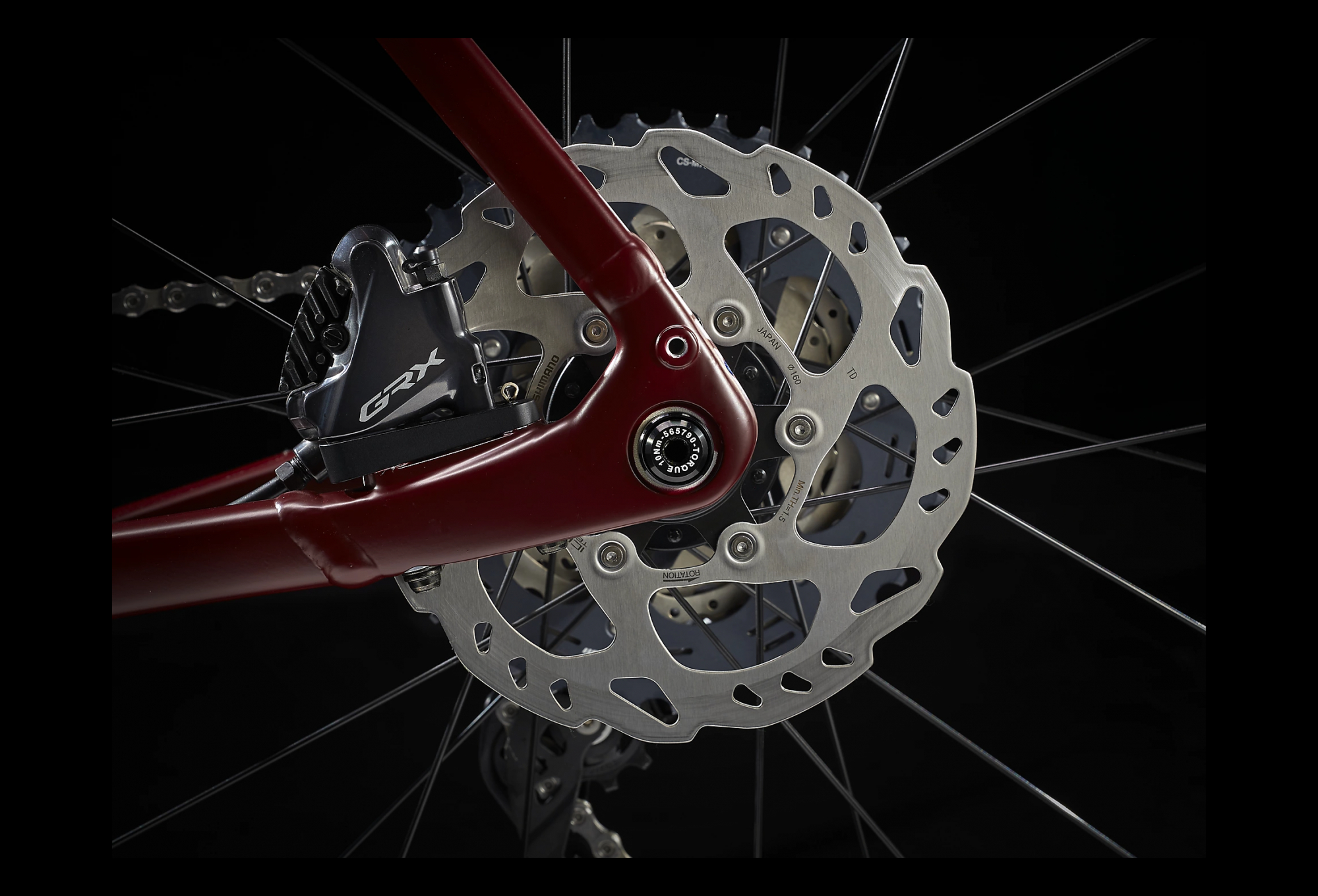 - Freins à disque hydrauliques Shimano GRX 160/160 mm.
