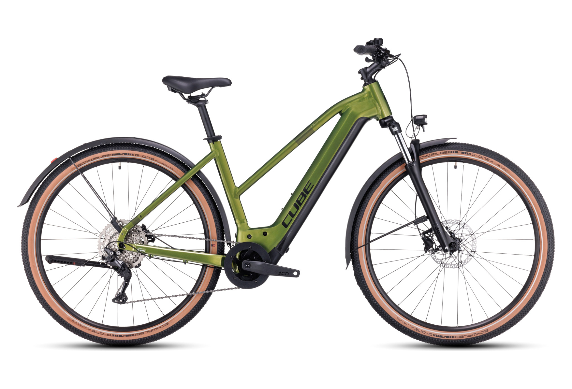 | Accessoires | Cube Shiny 50 Lux, 12V, DC Front Light / Acid Mudguard Rear Light PRO-E, 12V, DC / Acid FM Pure Kickstand / Acid 65 BB-Mount Mudguards / Easy Bell |