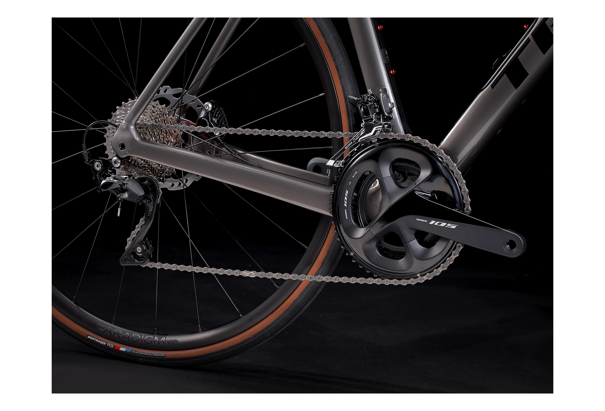Domane SL 5 est doté d’une transmission 105 fiable de Shimano, de freins à disque pour une puissance de freinage garantie par tous les temps et d’un espace de rangement interne facile d’accès pour conserver le matériel essentiel. Vous bénéficiez par ailleurs d’un dégagement généreux de 38 mm pour les pneus qui vous permet de vous attaquer aussi bien aux routes goudronnées qu’aux chemins de gravier.