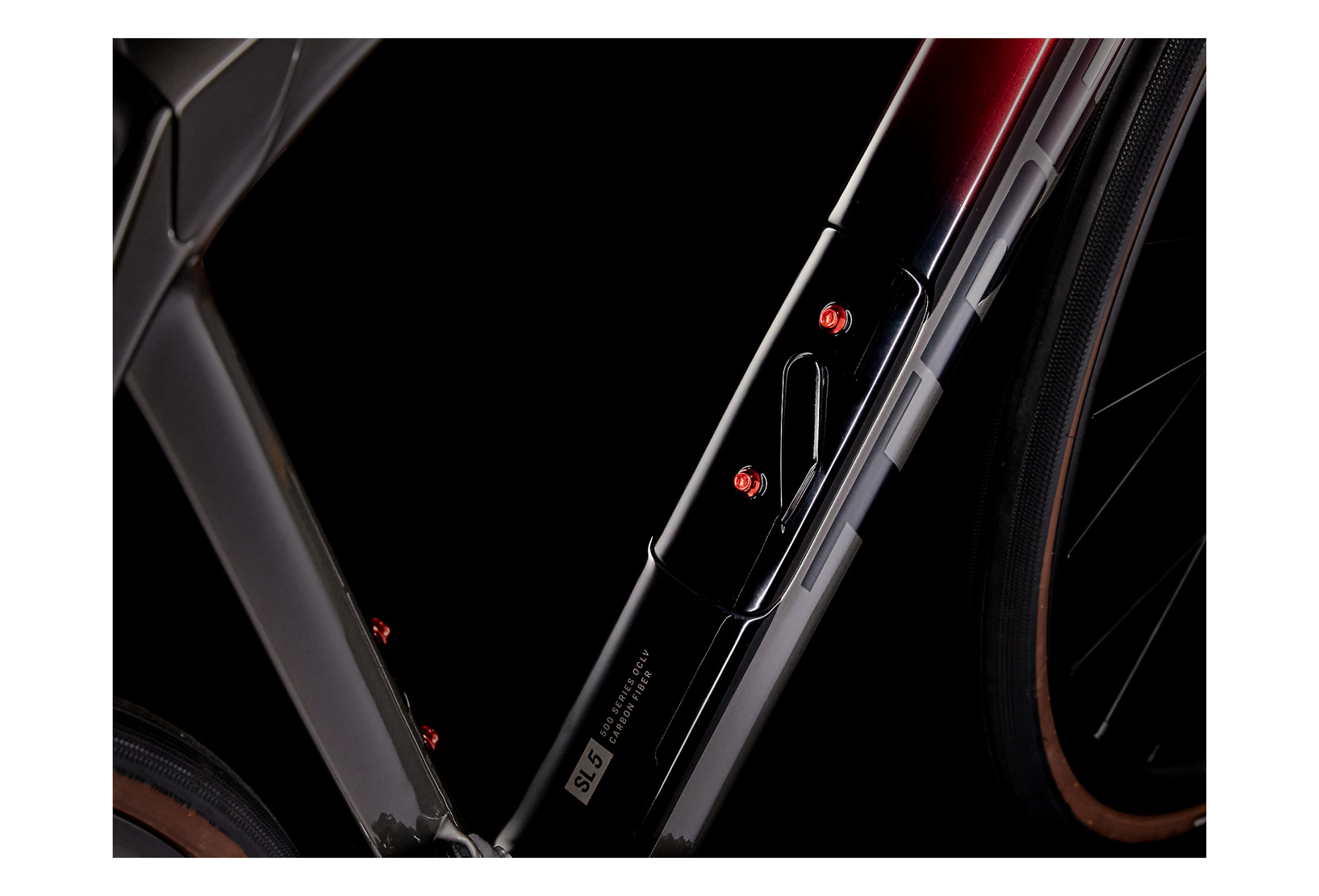 | Cadre | Carbone : Carbon OCLV Série 500, IsoSpeed, espace de rangement interne, douille de direction conique, acheminement interne, maintien de chaîne 3S, fixations pour garde-boue, freins à disque à fixation Flat-Mount, axe traversant 142×12 mm |