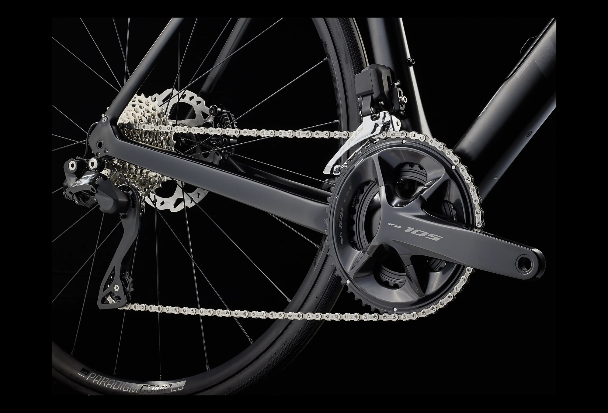 - Les roues Bontrager Paradigm tubeless ready offrent la confiance et le confort supplémentaires lors des longues sorties rapides.