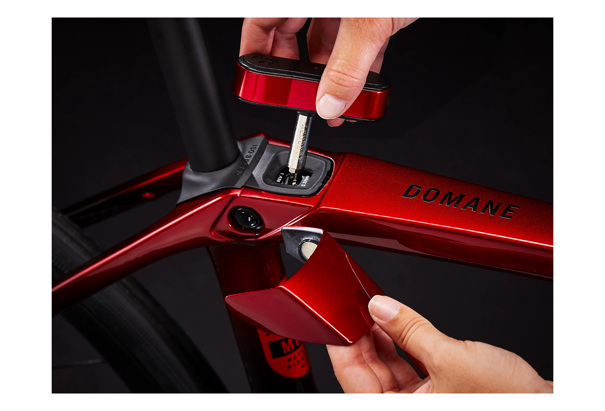 De plus, DOMANE SLR 6 ROUGE est doté d’un compartiment de rangement facile d’accès pour y conserver des articles essentiels et d’un dégagement pour les pneus de 38 mm polyvalent pour vous permettre de gérer sans difficulté les routes accidentées et les chemins de gravier.