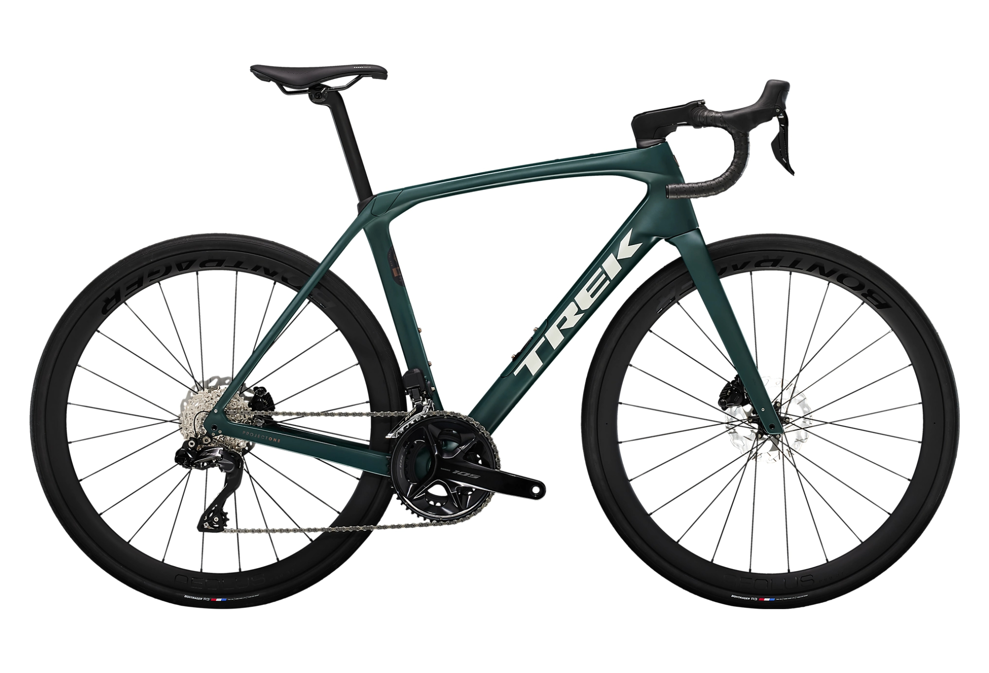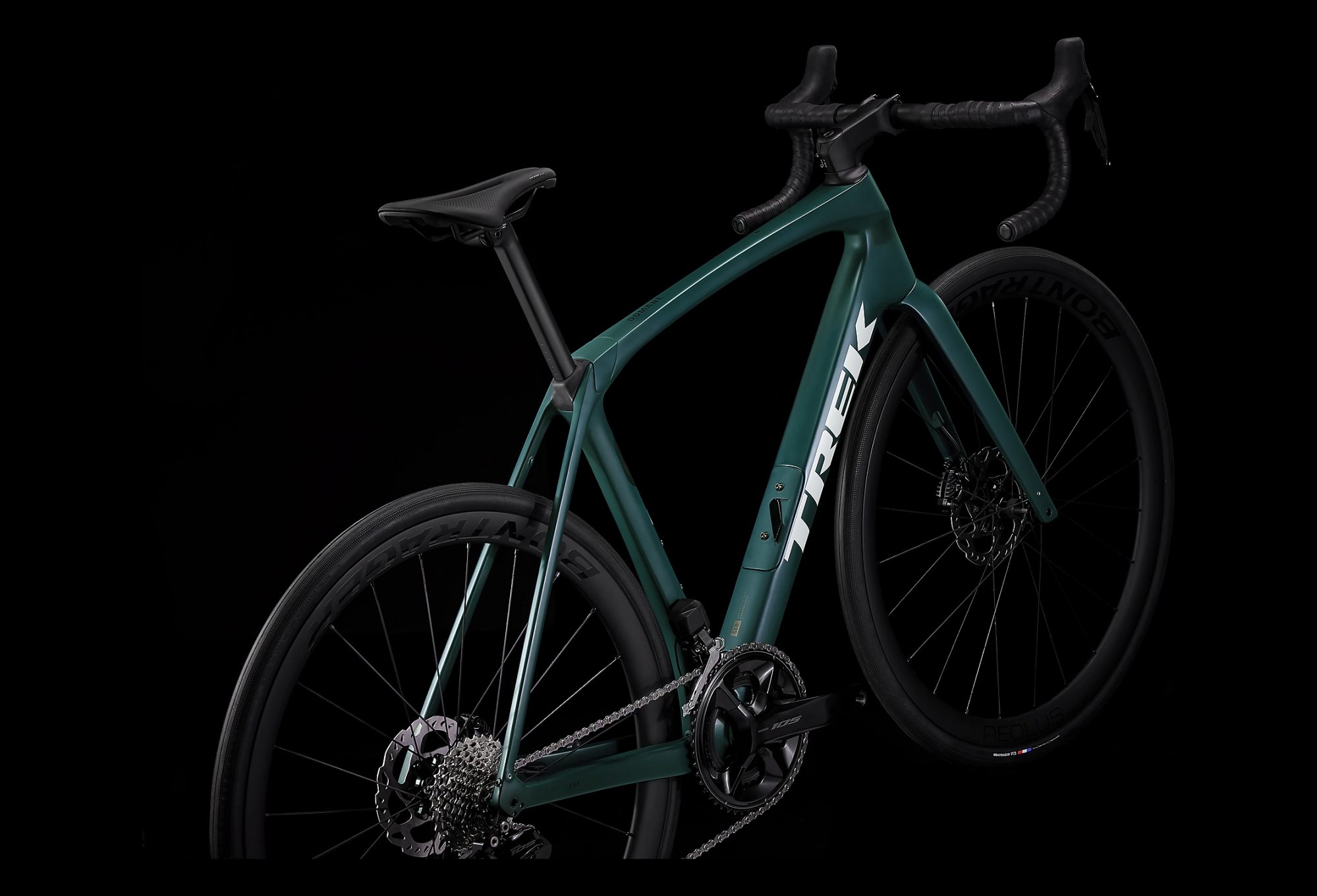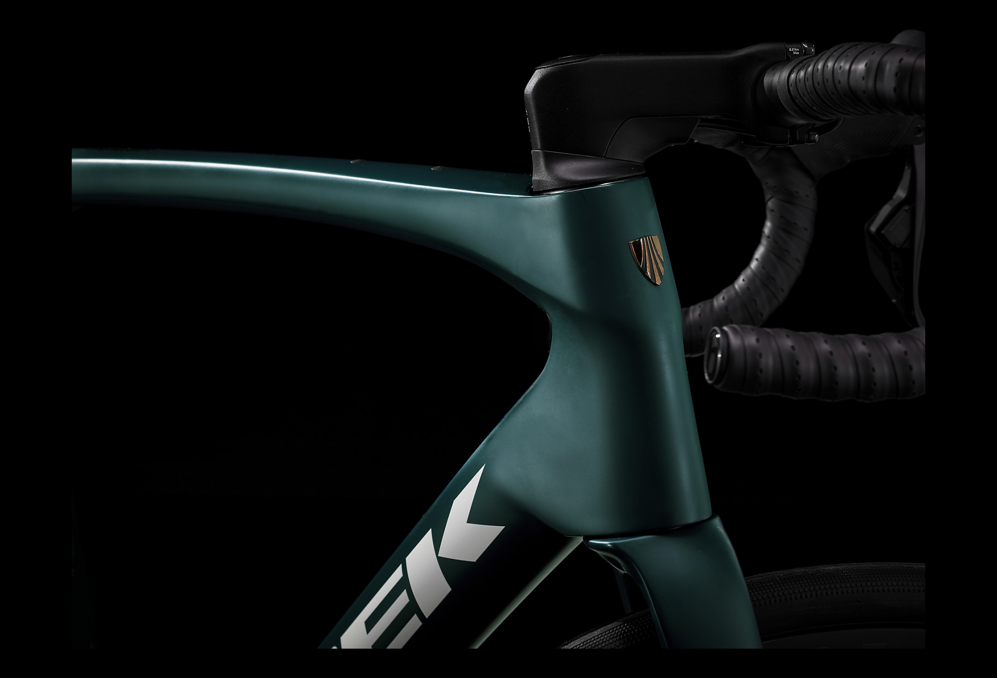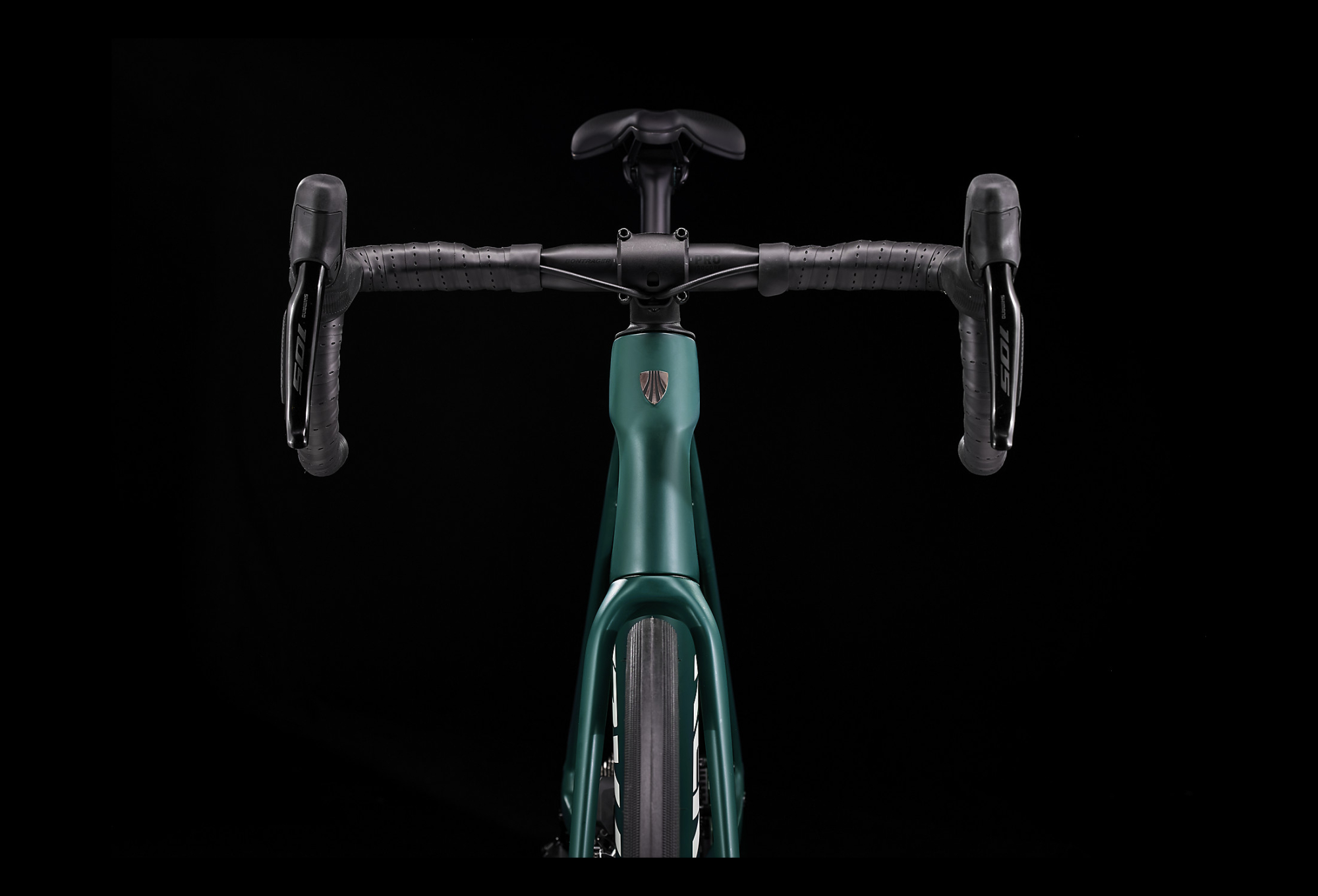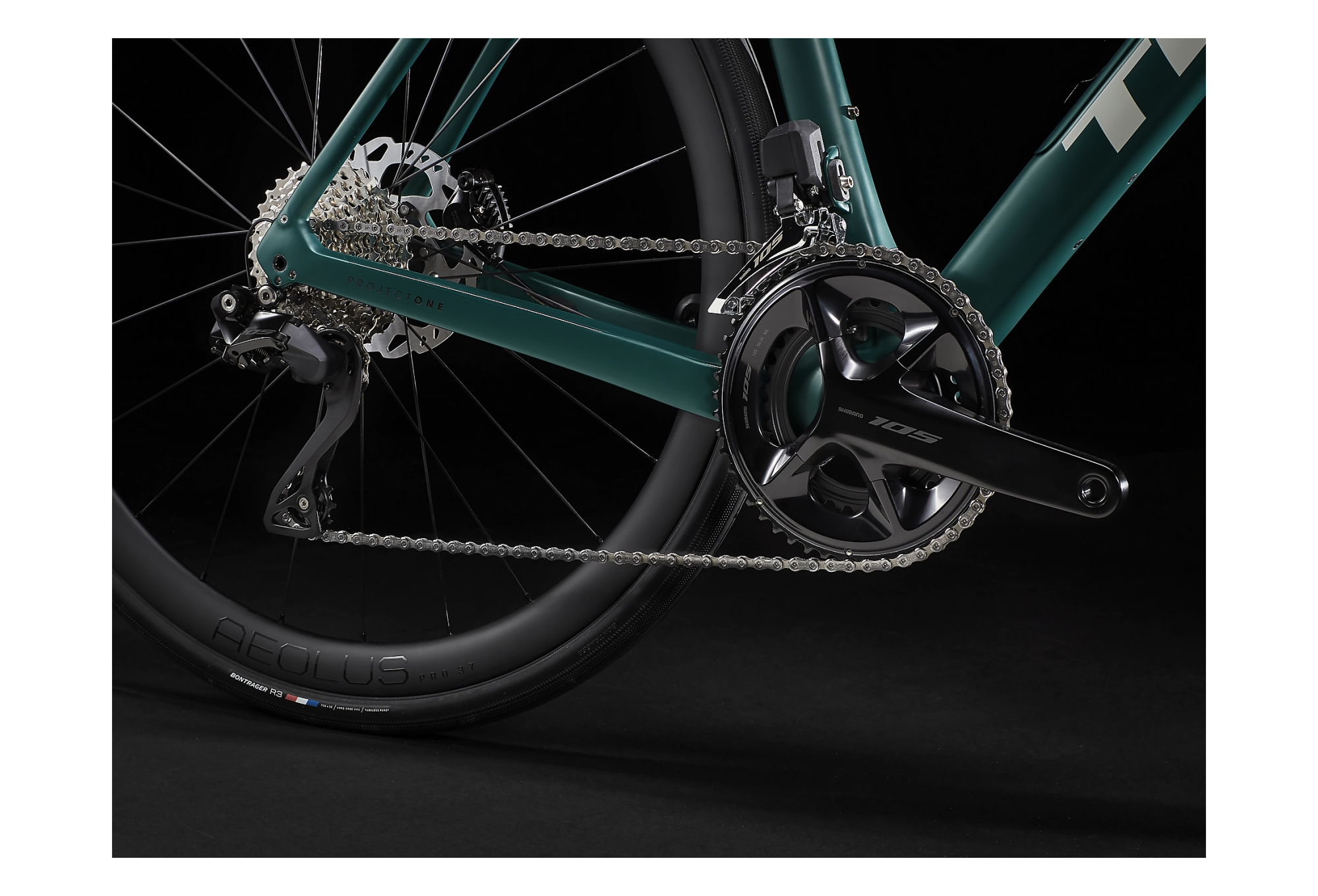 Il est équipé d’une transmission électronique sans fil 2×12 105 Di2 de Shimano, de puissants freins à disque à fixation Flat-Mount, de roues Aeolus Pro 37 en carbone et d’un cintre Bontrager Pro IsoCore qui garantit 20 % d’atténuation supplémentaires des vibrations par rapport à un cintre en carbone traditionnel.