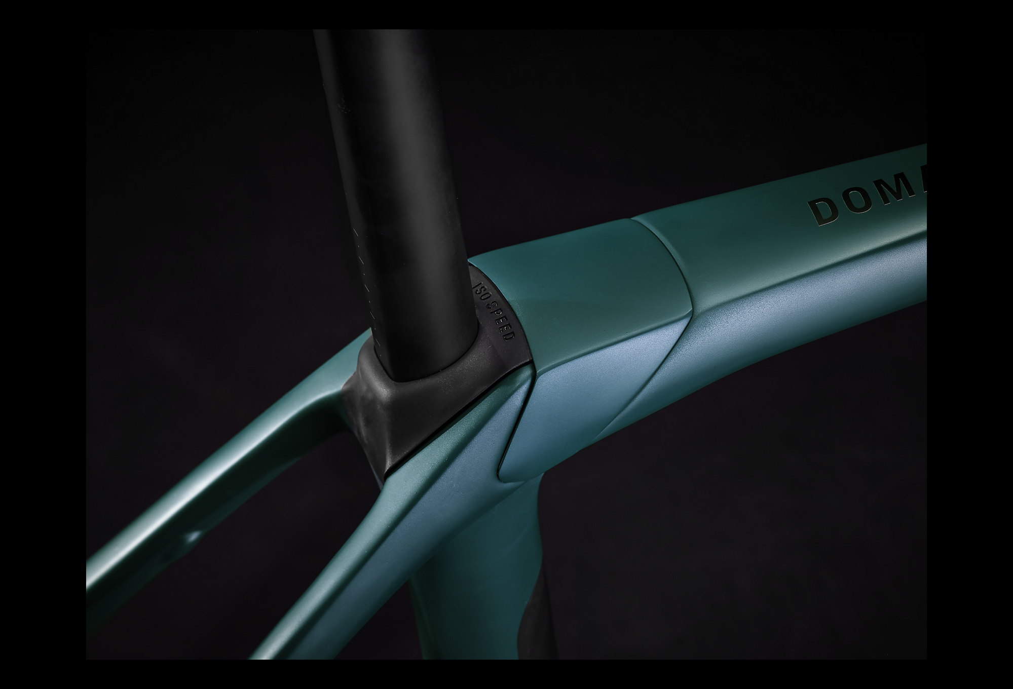 Fourche Carbone : Domane SLR carbone, pivot conique carbone, acheminement interne des câbles de frein, fixations pour garde-boue, freins à disque à fixation Flat-Mount, pattes en carbone, axe traversant 12×100 mm