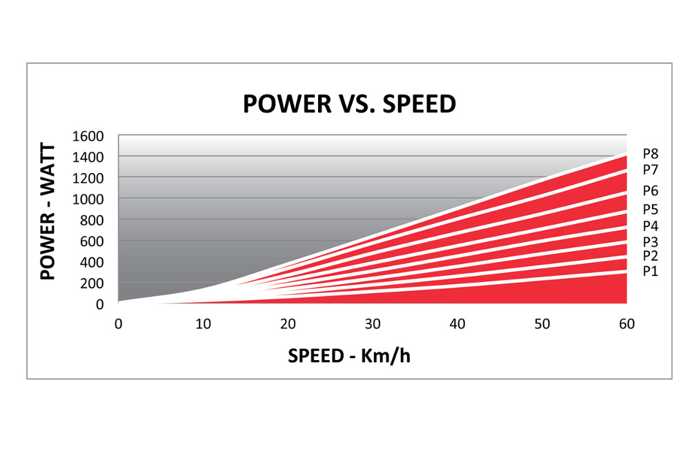 • Puissance Max : 900 Watt (60 km/h en P8)