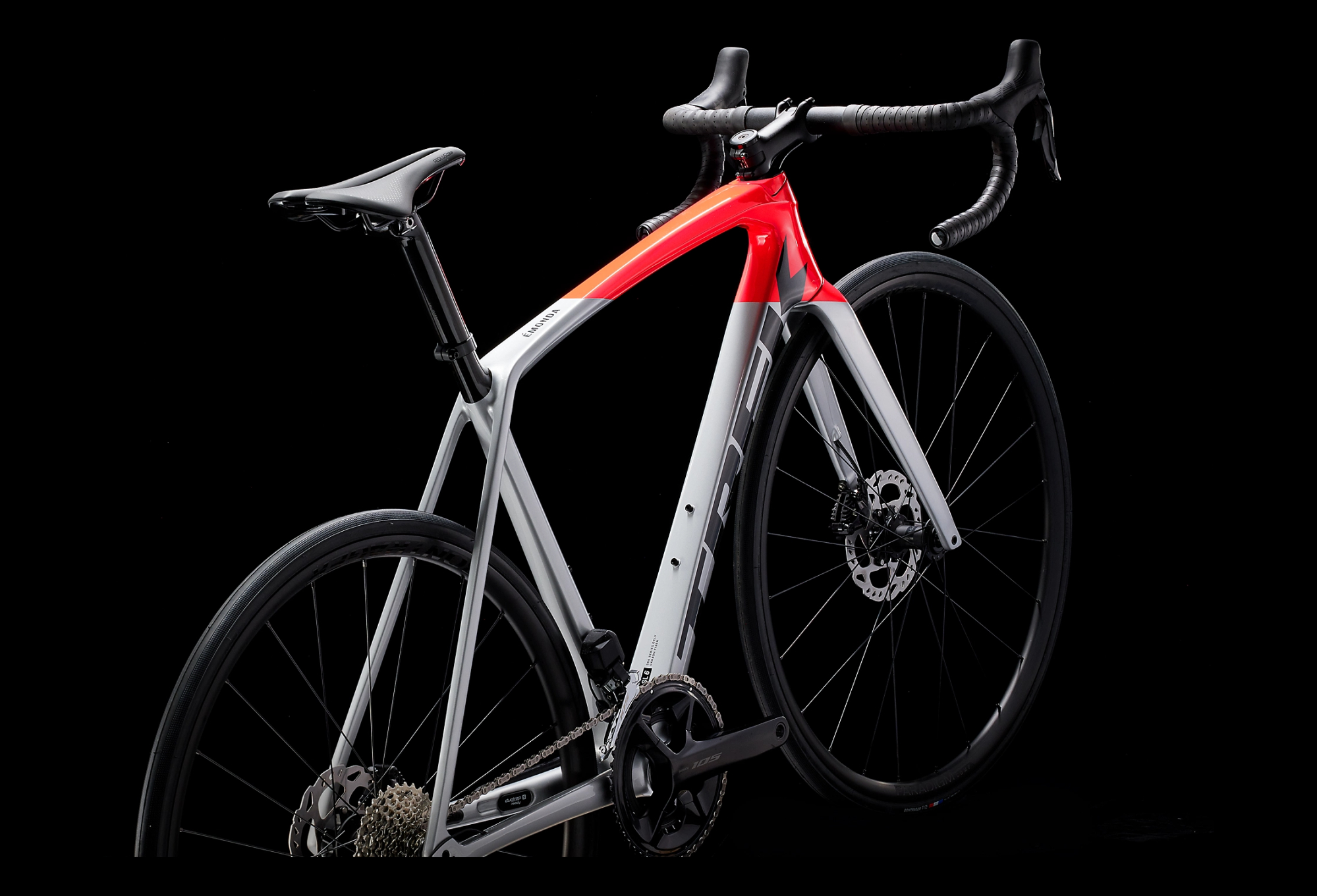 EMONDA SL 6 DI2, un ensemble cadre et fourche léger et aérodynamique en Carbon OCLV 500 Seriesk, une transmission électronique sans fil 105 Di2 2×12, et des roues Bontrager Paradigm Comp. Les freins à disque contribuent à l’amélioration de la puissance de freinage et à la précision de la modulation.