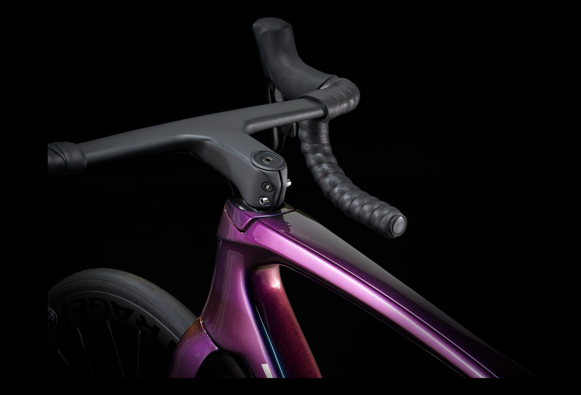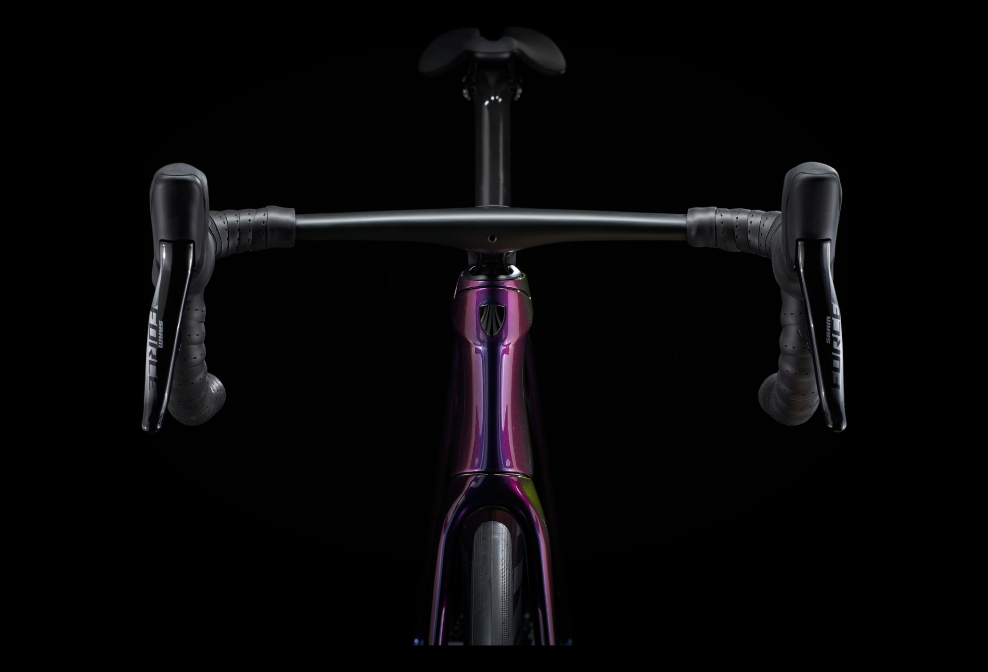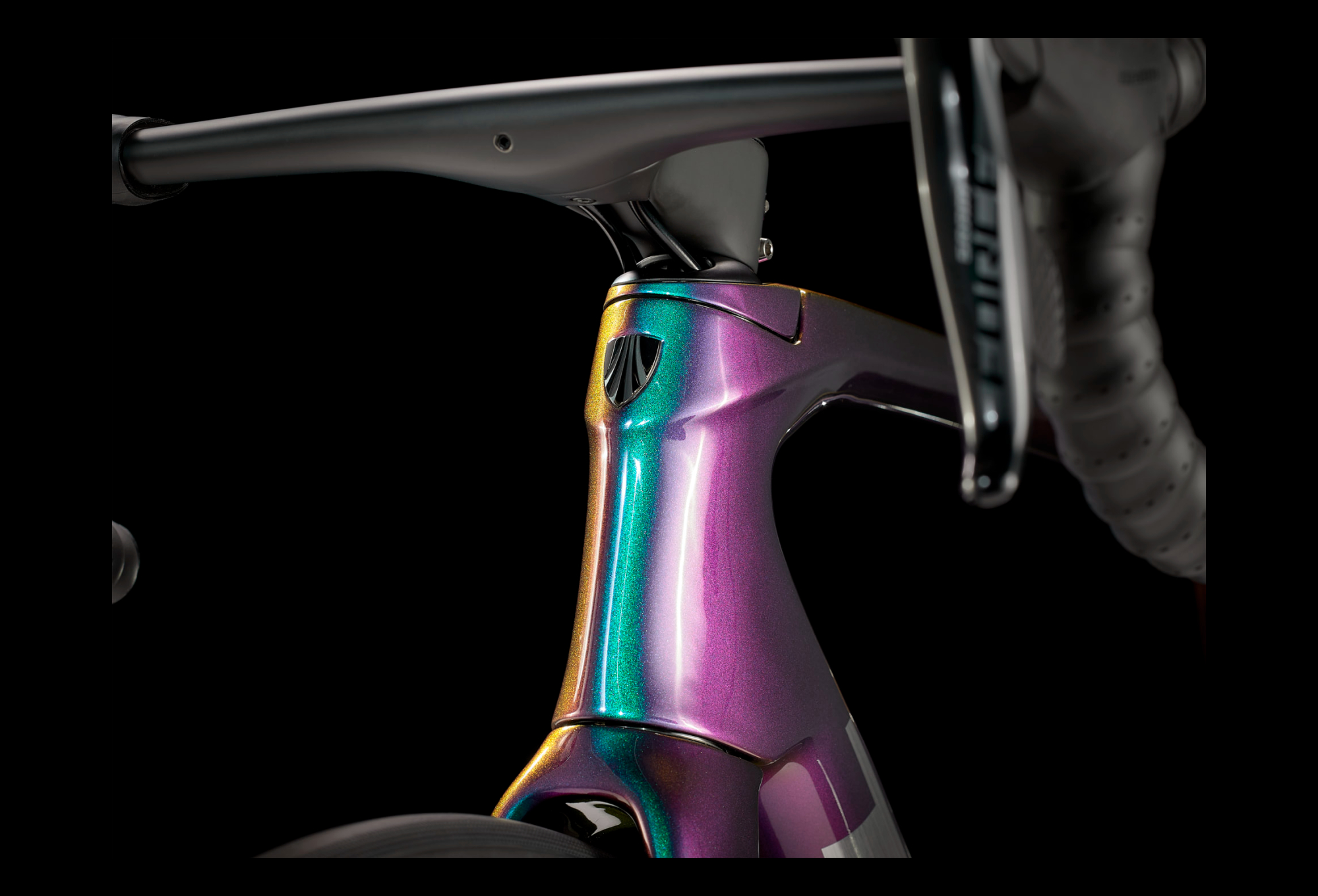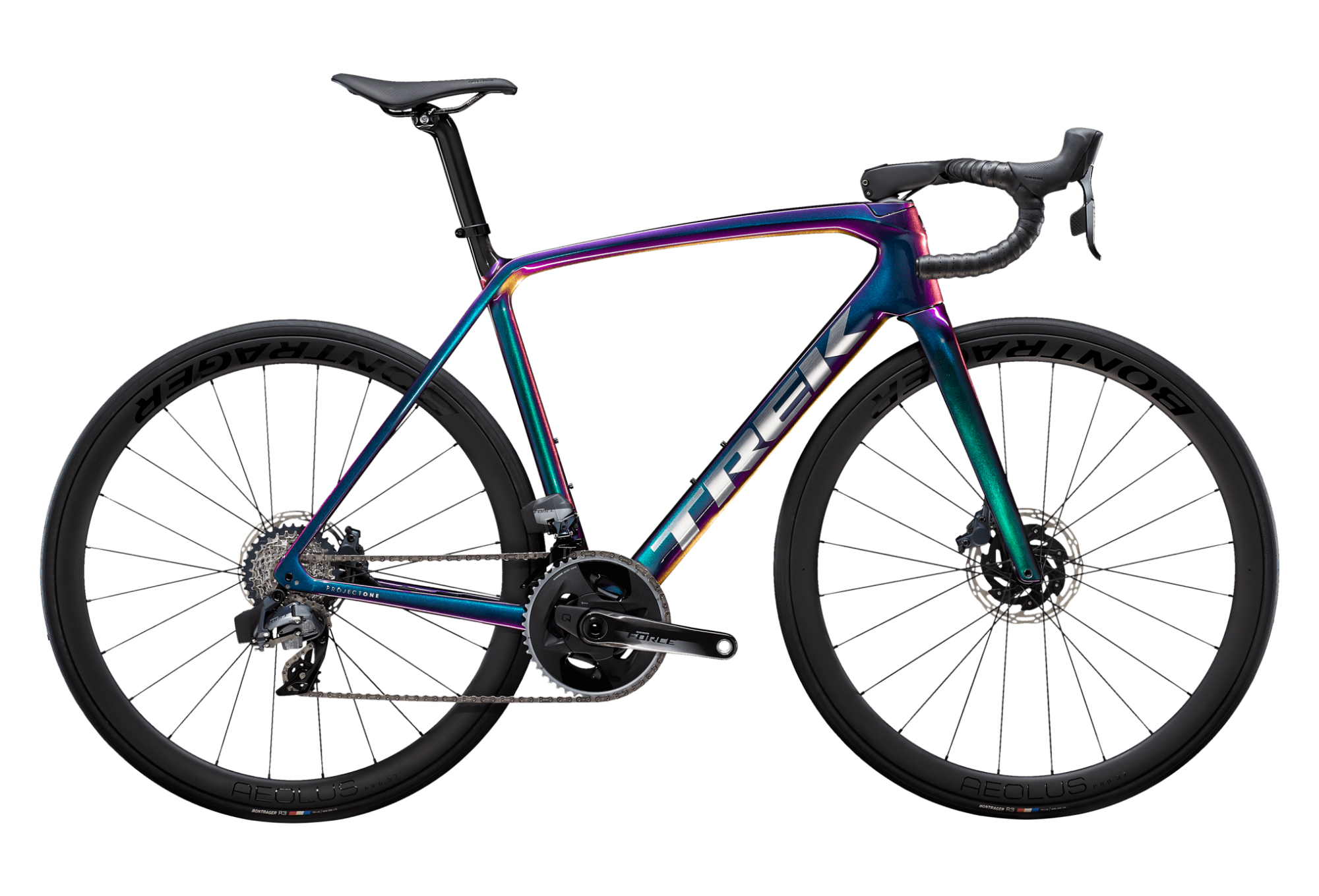 ÉMONDA SLR 7 AXS possède un cadre en OCLV Carbon Séries 800 ultraléger et aérodynamique qui pèse moins de 700 grammes, une transmission électronique sans fil 2×12 SRAM Force eTap AXS, des roues légères en OCLV Carbon tubeless ready Bontrager Aeolus Pro 37, un combiné cintre/potence aérodynamique Aeolus RSL en OCLV Carbon, un capteur de puissance SRAM Force AXS et de puissants freins à disque hydrauliques.