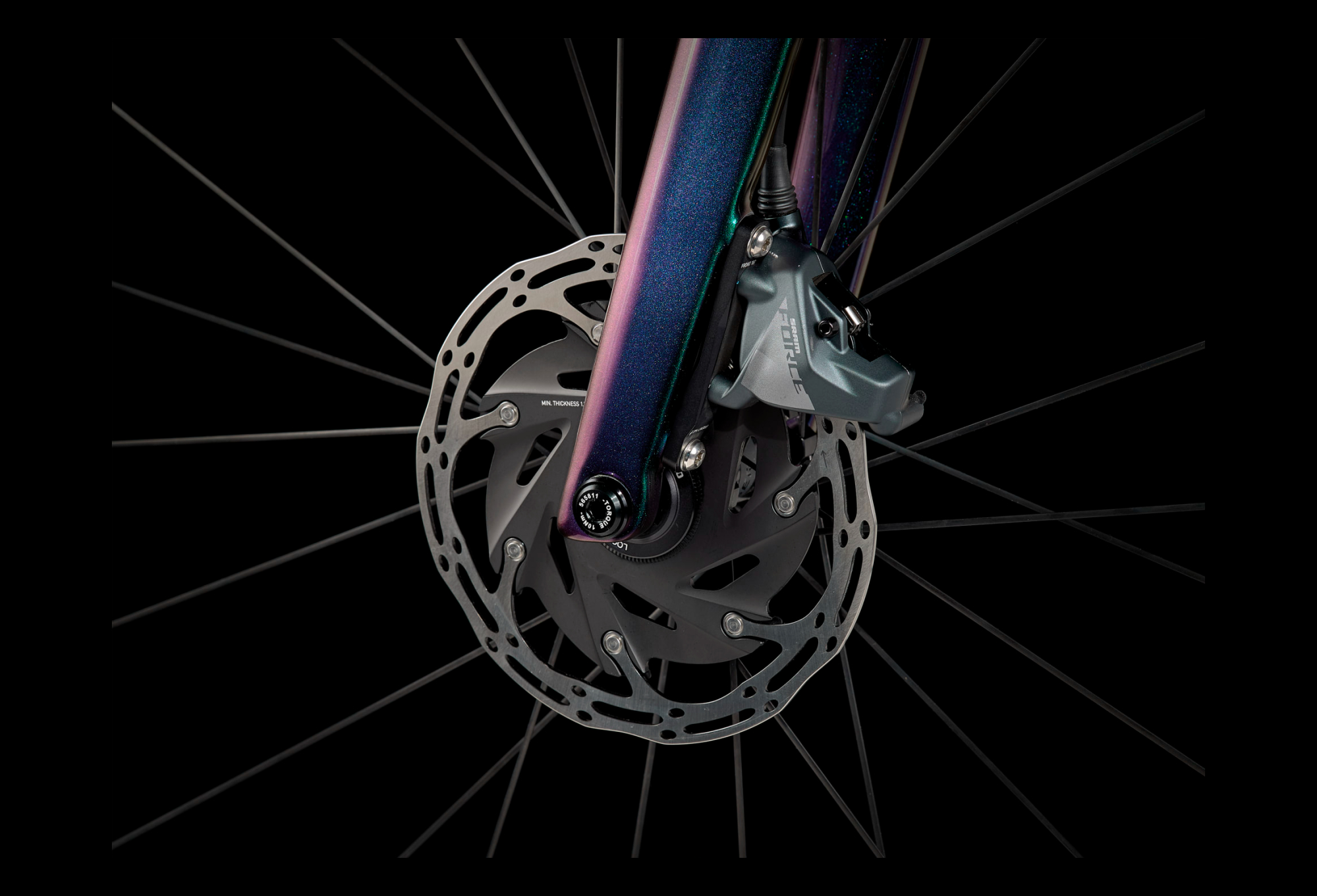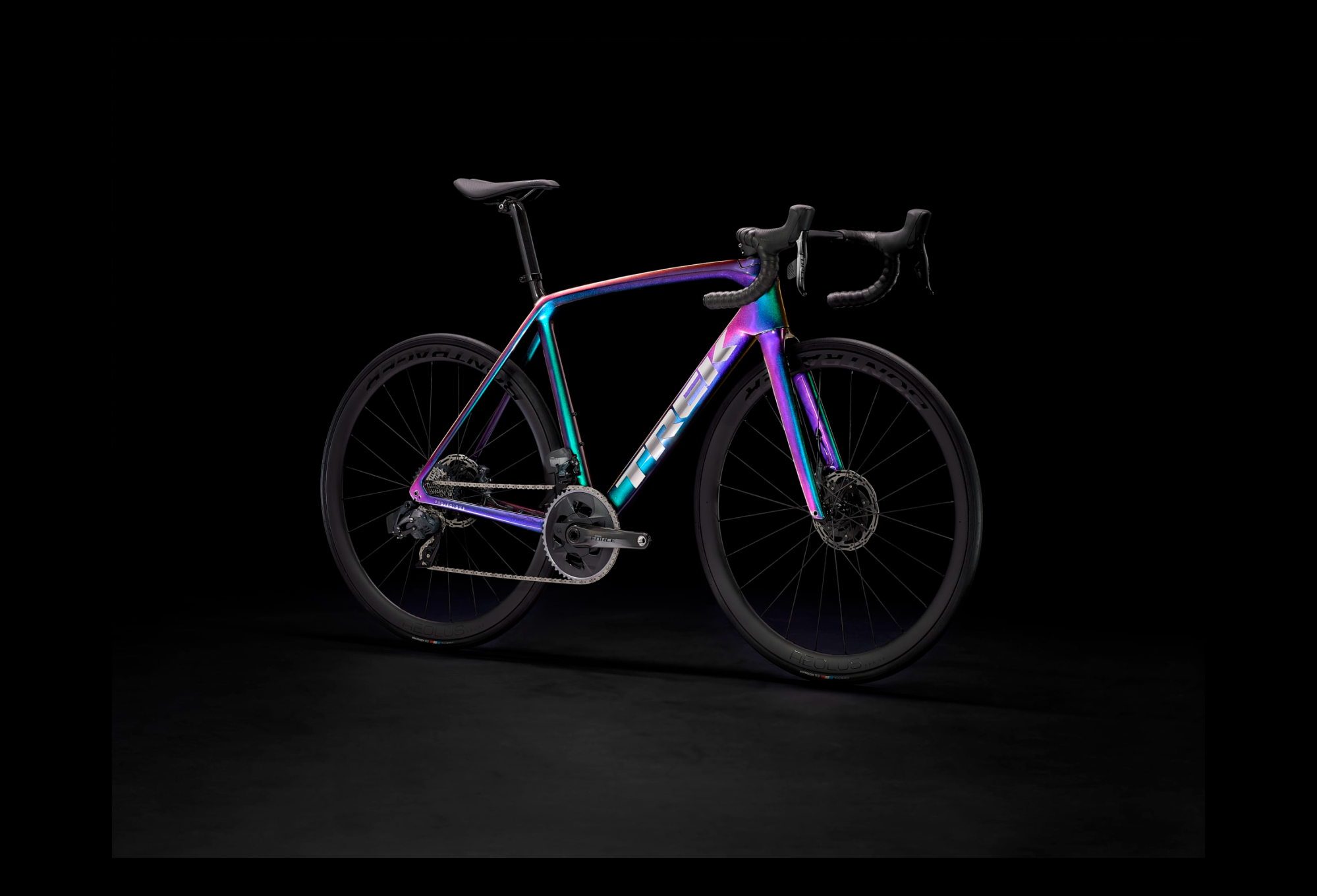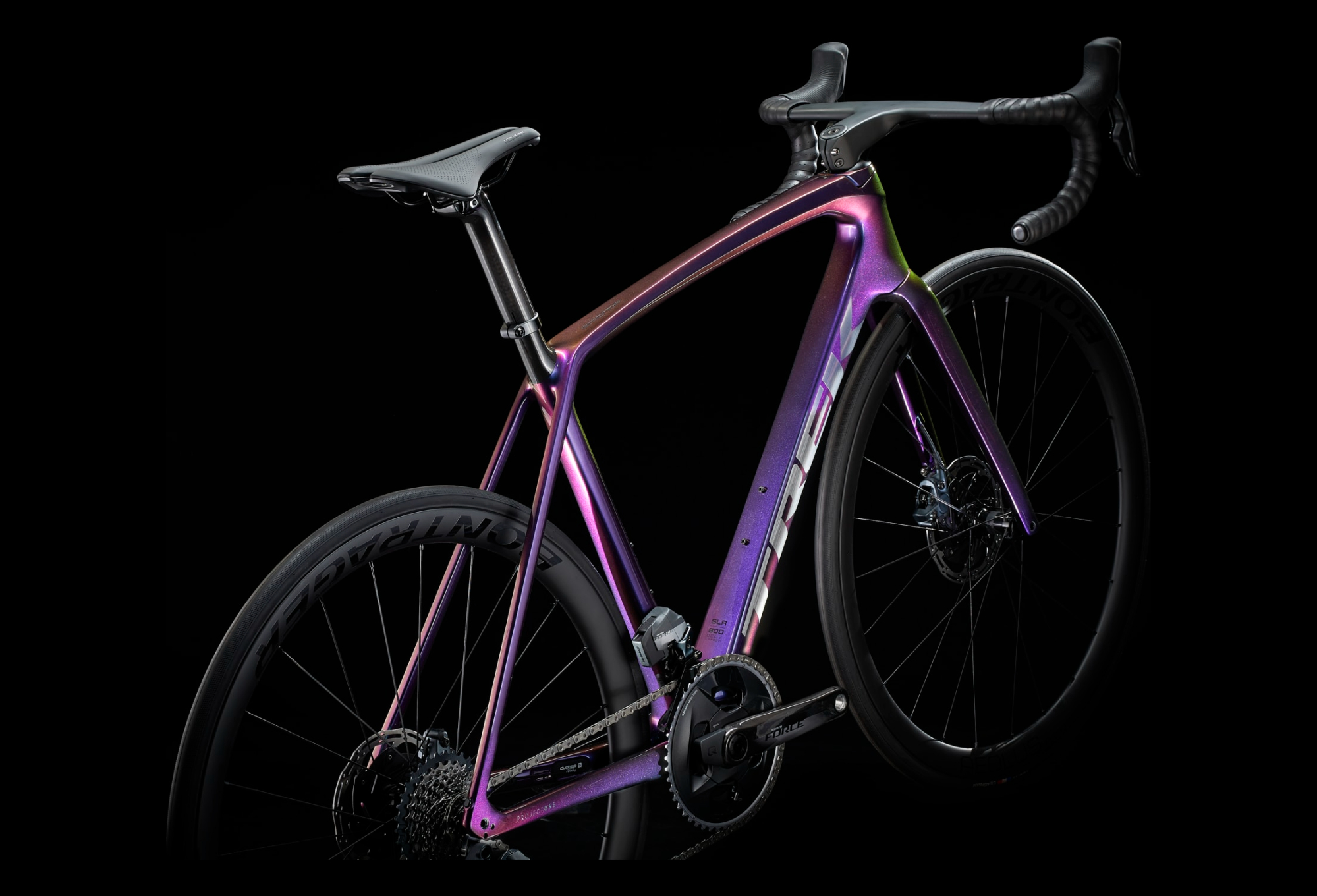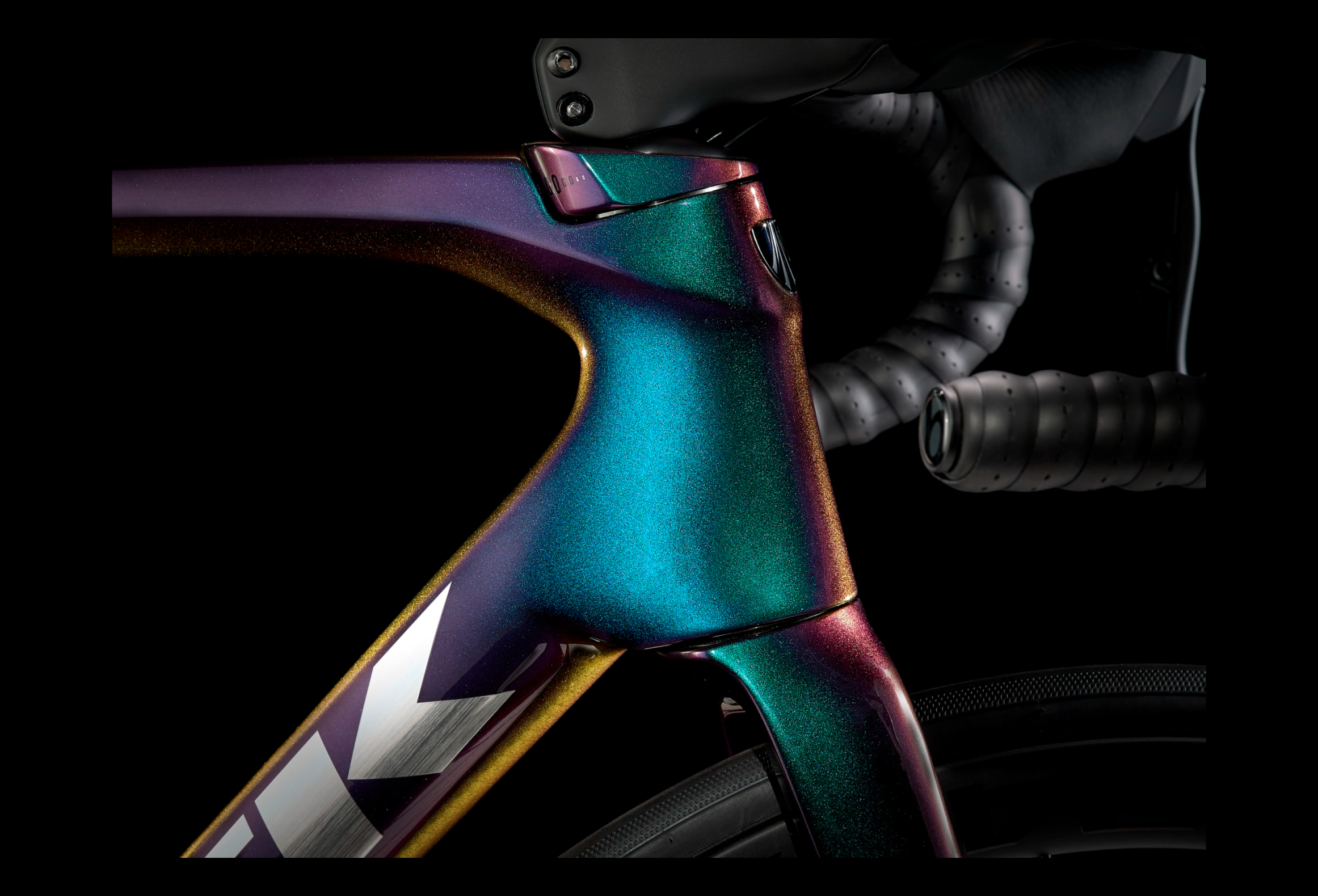ÉMONDA SLR 7 AXS possède un cadre en OCLV Carbon Séries 800 ultraléger et aérodynamique qui pèse moins de 700 grammes, une transmission électronique sans fil 2×12 SRAM Force eTap AXS, des roues légères en OCLV Carbon tubeless ready Bontrager Aeolus Pro 37, un combiné cintre/potence aérodynamique Aeolus RSL en OCLV Carbon, un capteur de puissance SRAM Force AXS et de puissants freins à disque hydrauliques.