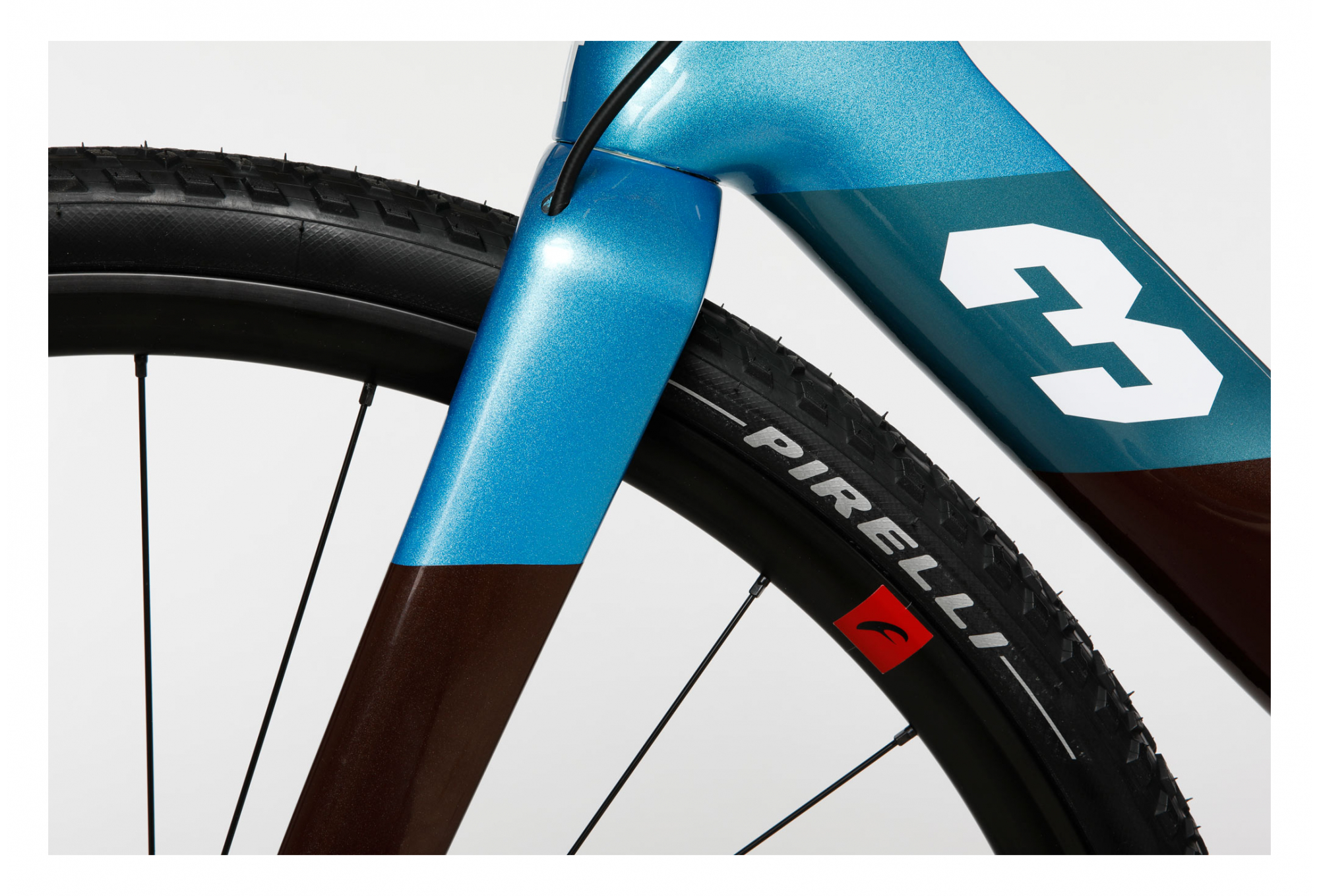 - Cadre 3T Exploro RaceMax en carbone et fourche avec couronne minimaliste.