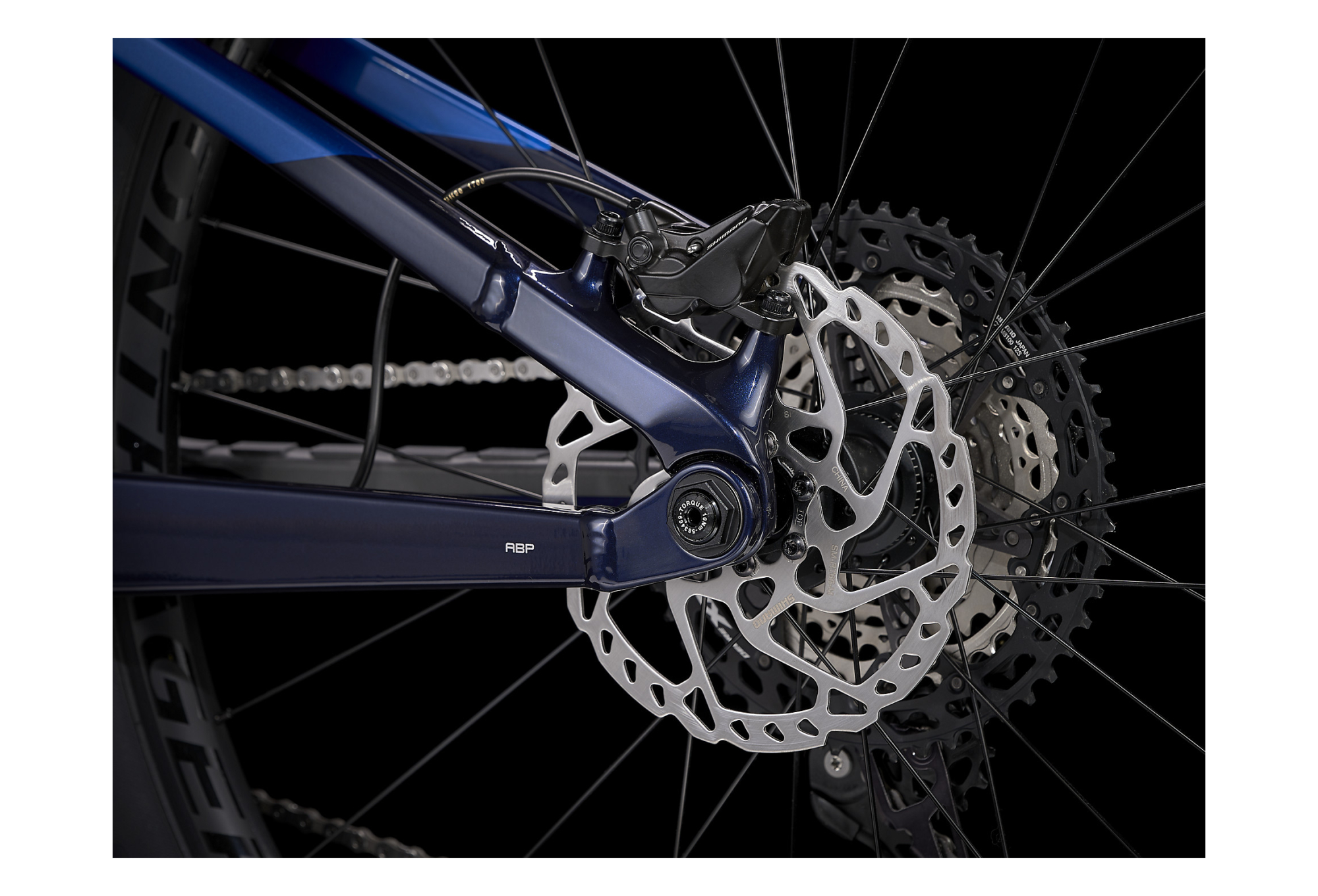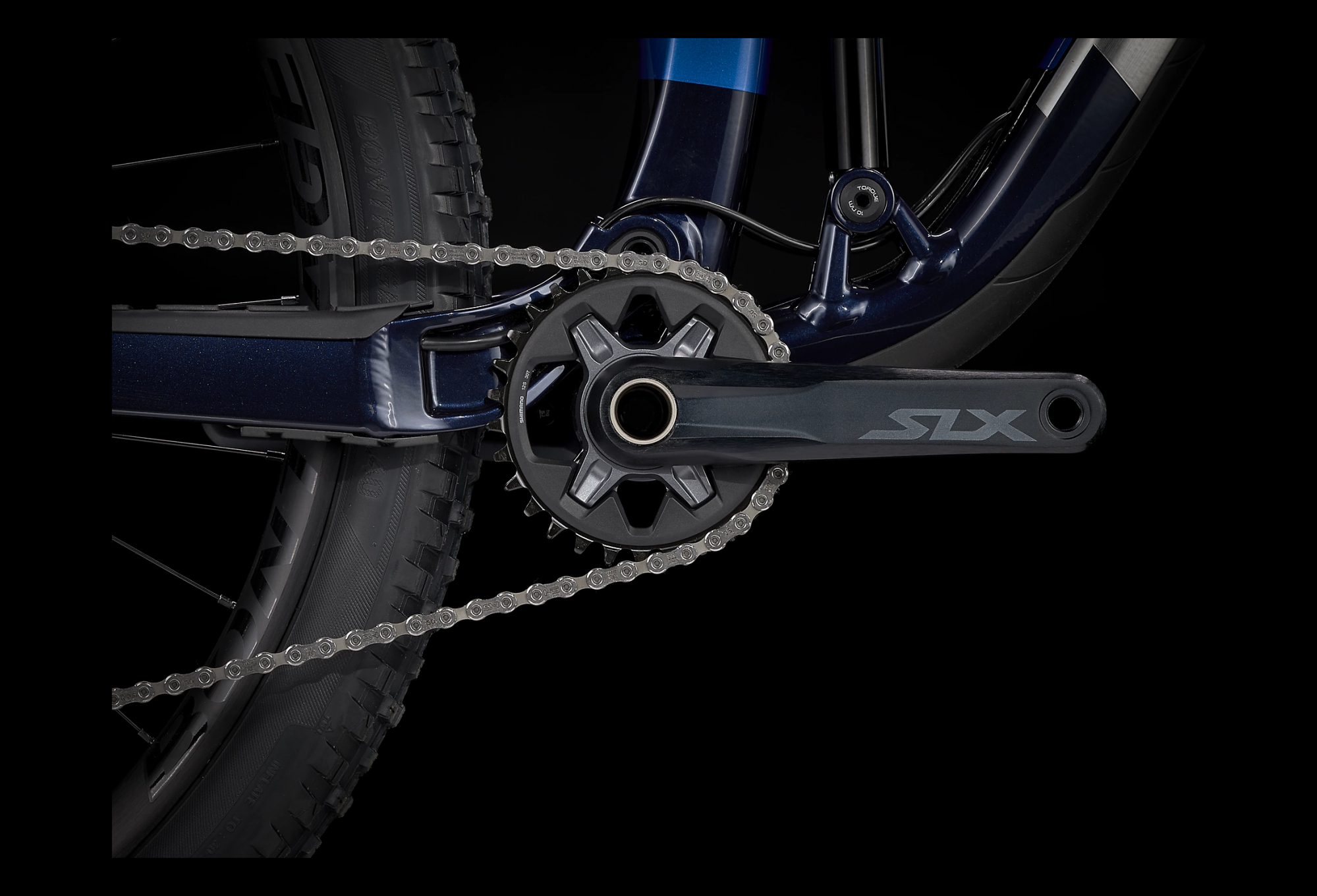Un cadre alliage d’aluminium, une fourche Fox Rhythm 34 de 140 mm et 130 mm de débattement à l’arrière avec un amortisseur RE:aktiv ultra-efficace. Ajoutez à cela une transmission monoplateau 12 vitesses Shimano XT avec un pignon de 51 dents pour les montées, de puissants freins à disque hydrauliques à 4 pistons, des roues Bontrager avec moyeu arrière Rapid Drive 54 dents pour un engagement rapide et une tige de selle télescopique Bontrager Line.