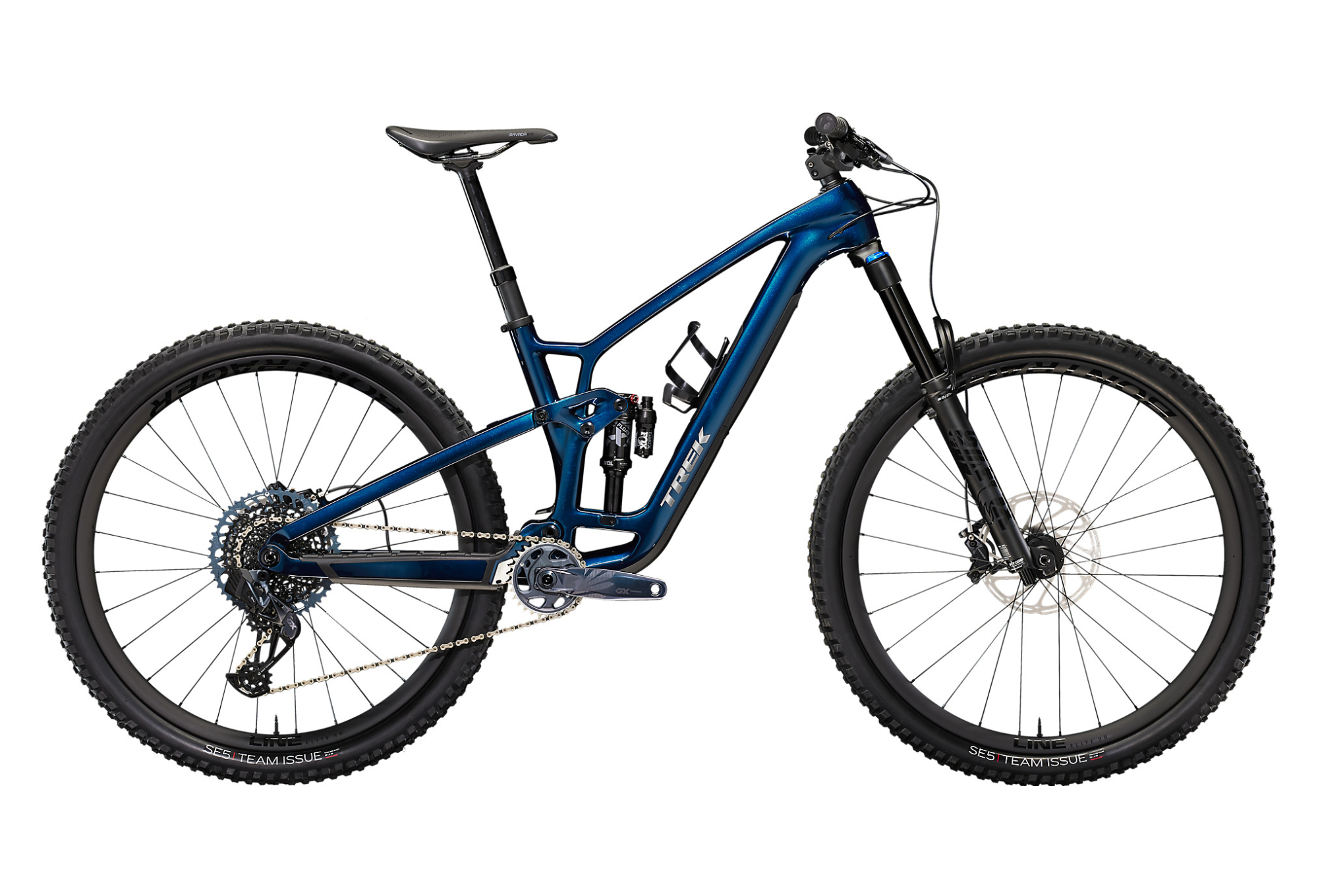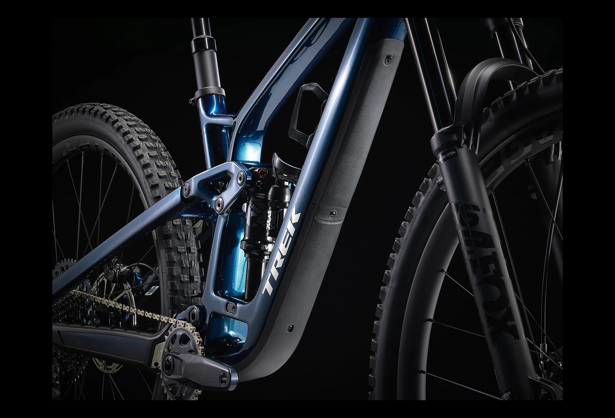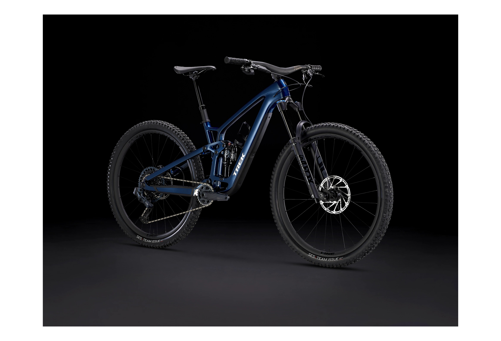 FUEL EX 9.8 BLEU regorge des technologies les plus récentes comme une transmission Sram GX AXS sans fil très épurée et offrant des options de personnalisation.