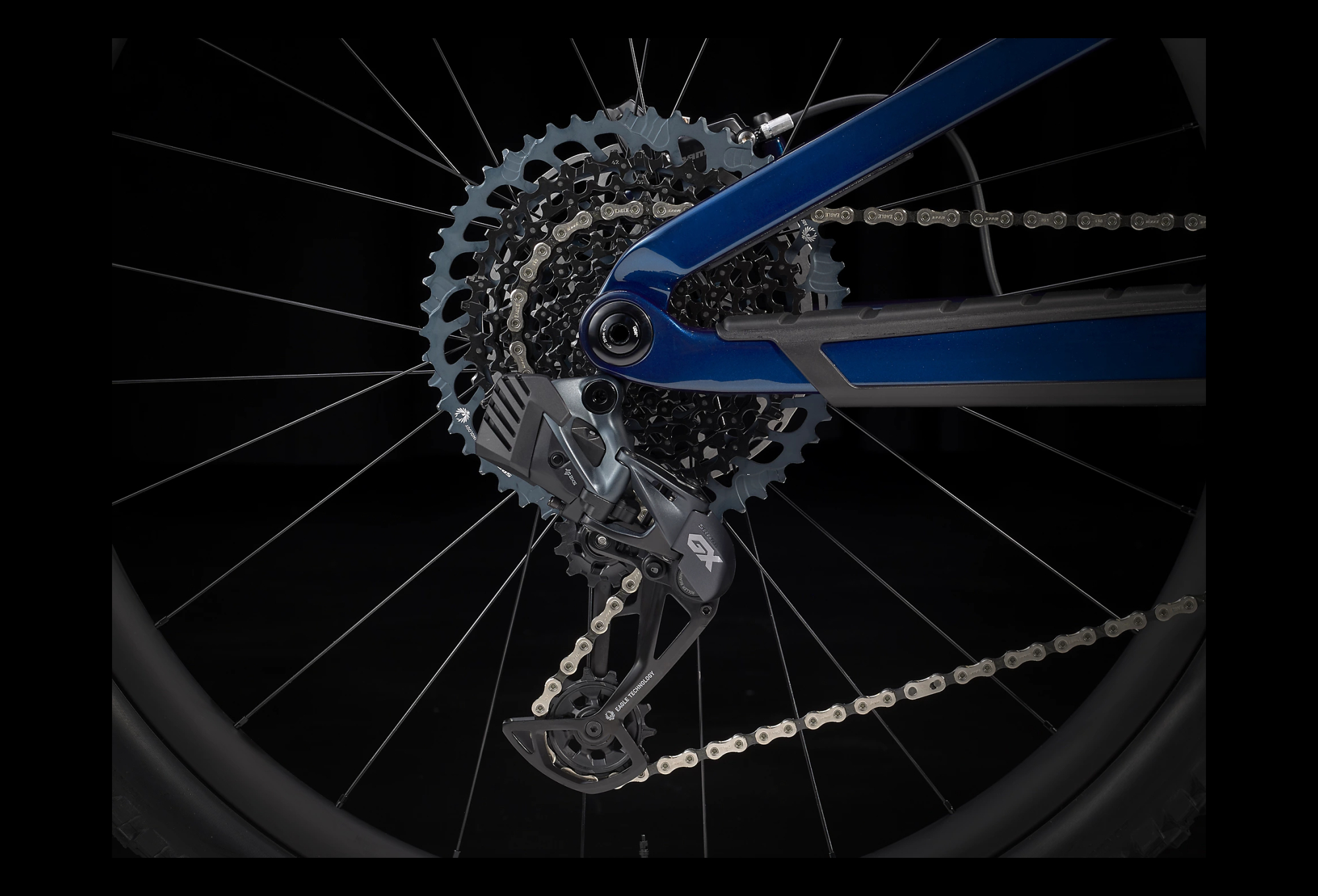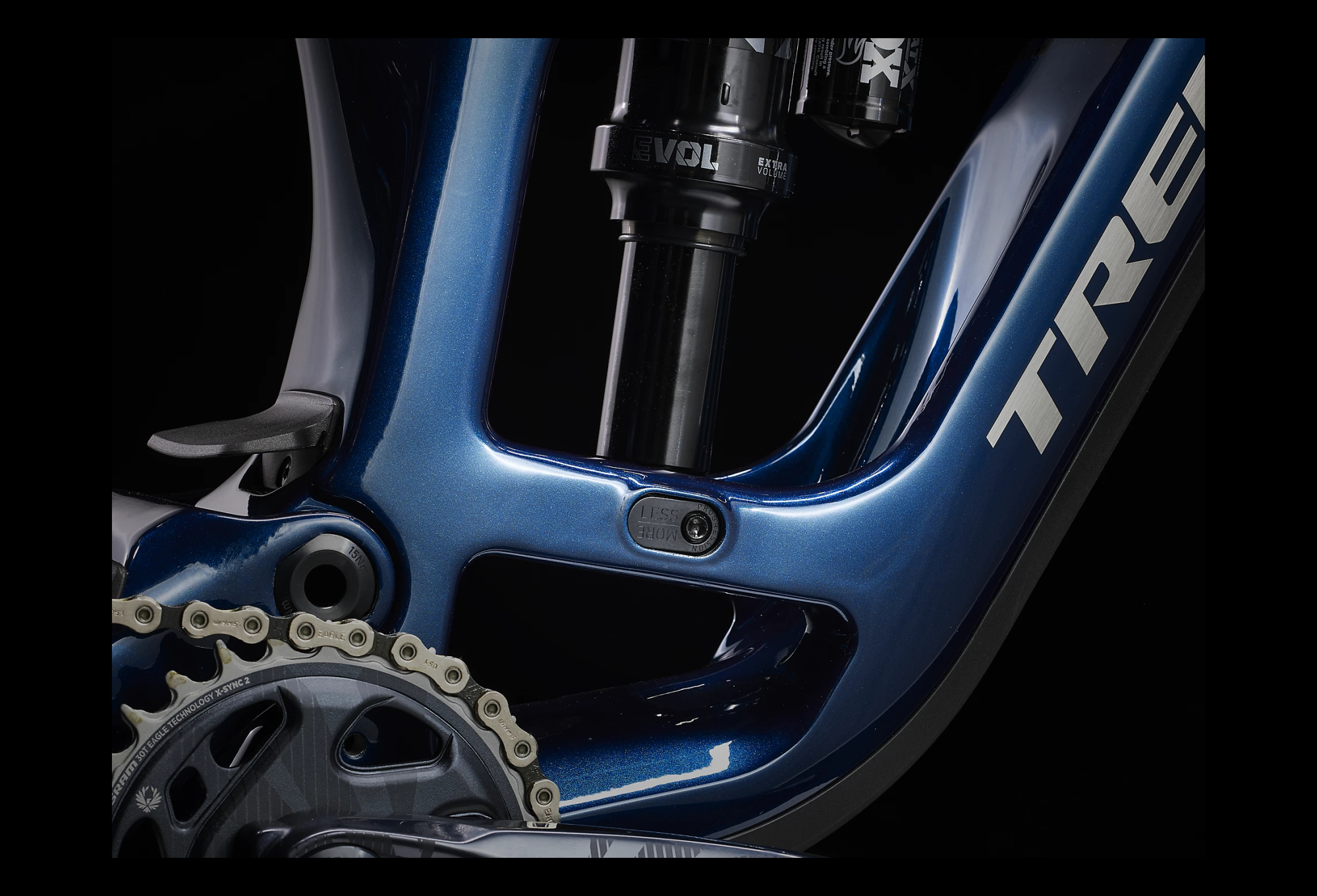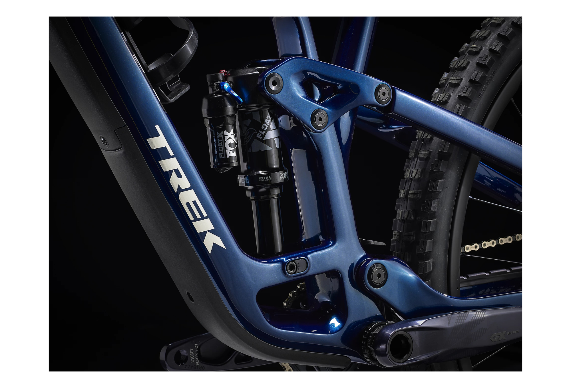 FUEL EX 9.8 BLEU regorge des technologies les plus récentes comme une transmission Sram GX AXS sans fil très épurée et offrant des options de personnalisation.