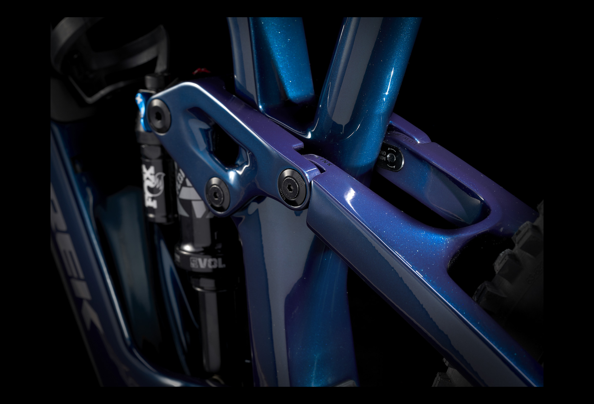 Cadre Carbone : OCLV Mountain Carbon, espace de rangement interne, jeu de direction angle-adjust, géométrie variable via Mino Link, ratio de levier réglable, acheminement interne guidé, basculeur magnésium, tube de selle 34,9 mm, ISCG 05, ligne de chaîne 55 mm, BSA 73, protection de tube diagonal, ABP, UDH, Boost148, débattement de 140 mm