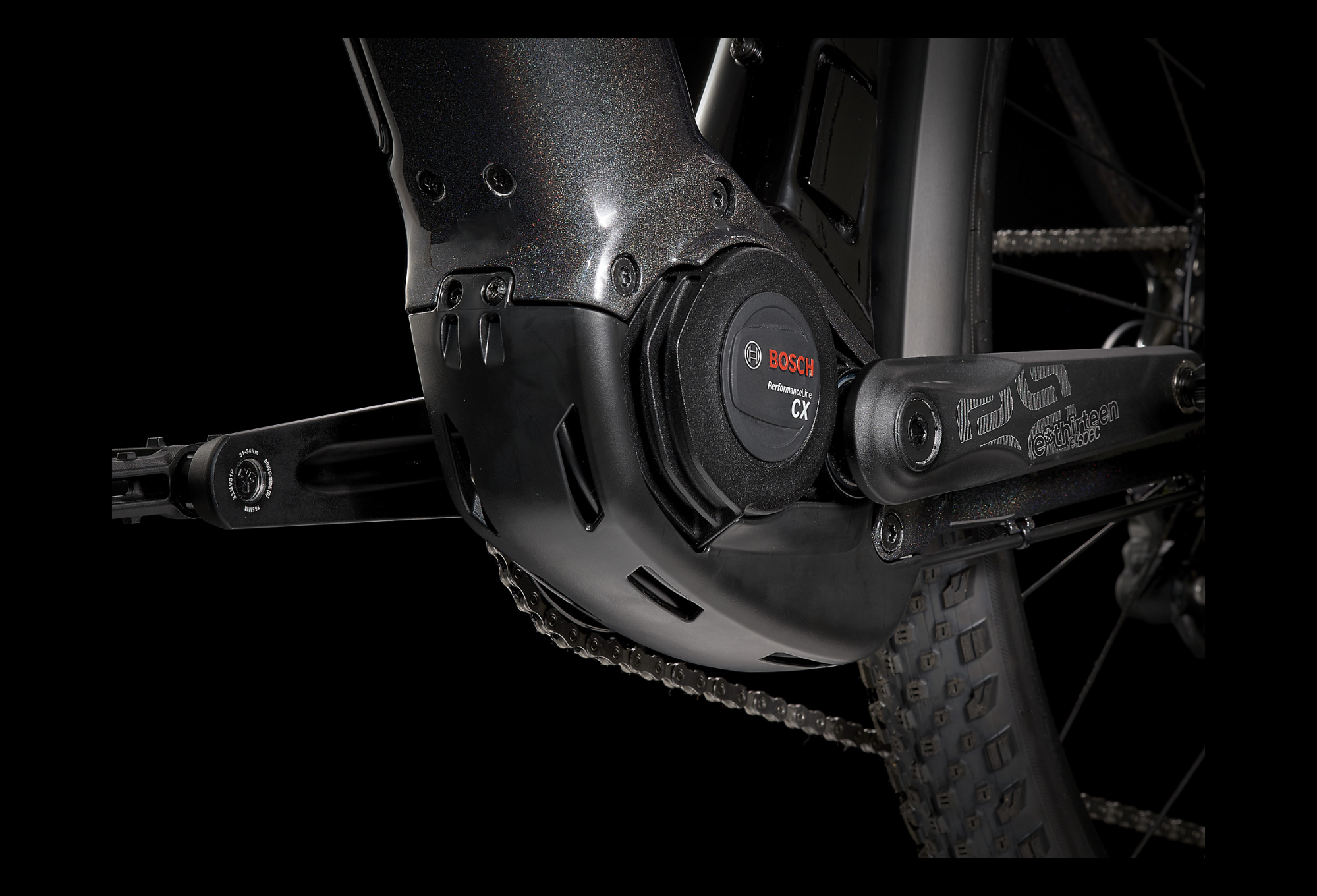Un cadre aluminium résistant dans lequel est entièrement encastrée une batterie de grande autonomie de 625 Wh pour préserver l’esthétique et garantir la protection du composant sur les trails, un moteur Bosch Performance CX capable d’offrir une assistance jusqu’à 25 km/h, un dispositif de commande Bosch Kiox.
