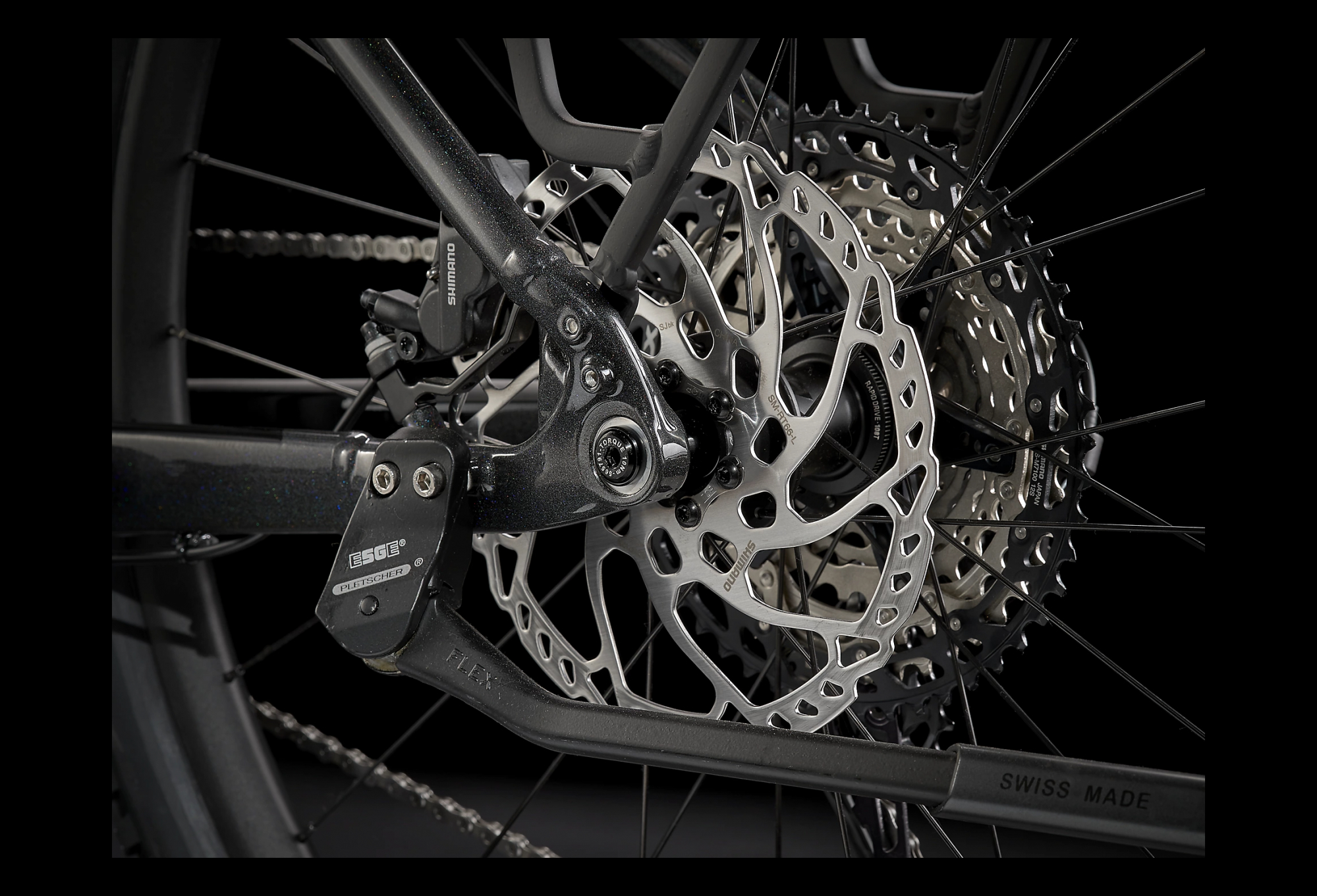 Il est équipé d’un puissant moteur Bosch et de notre système de batterie intégrée amovible (RIB) facile à utiliser. Il est aussi doté d’une transmission monoplateau 12 vitesses Shimano, d’une tige de selle télescopique, ainsi que d’accessoires adaptés aux trajets quotidiens tels que des garde-boue, un porte-bagages arrière et de feux avant et arrière alimentés par la transmission du VTTAE.