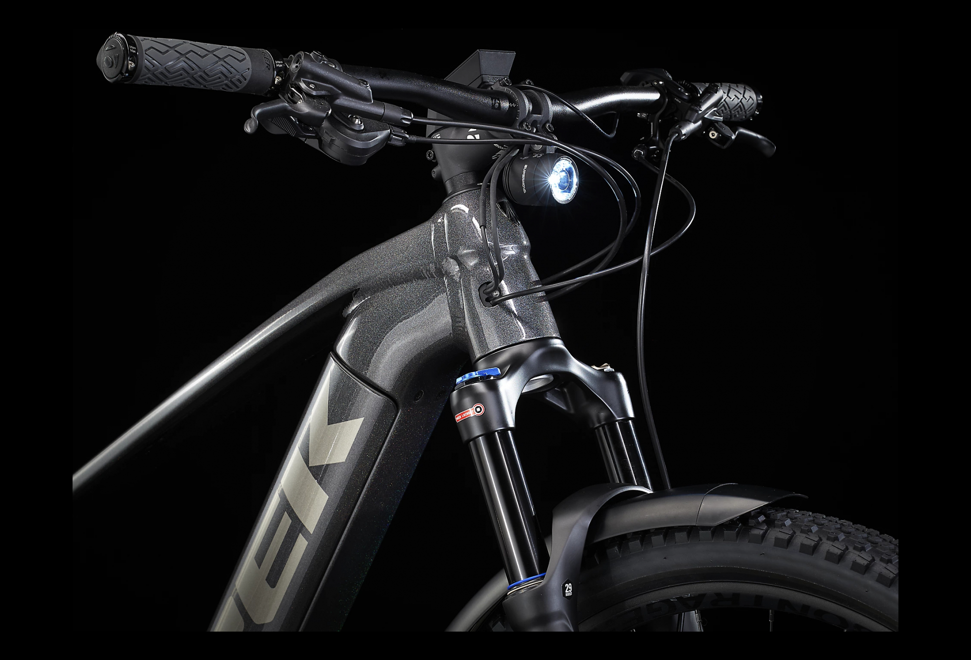 - Le système de batterie intégrée amovible de Trek affiche un look remarquable et est on ne peut plus convivial : il dissimule complètement la batterie dans le cadre afin de la protéger, il permet de déposer aisément la batterie sans outillage et laisse de l’espace pour la fixation d’un porte-bidon.