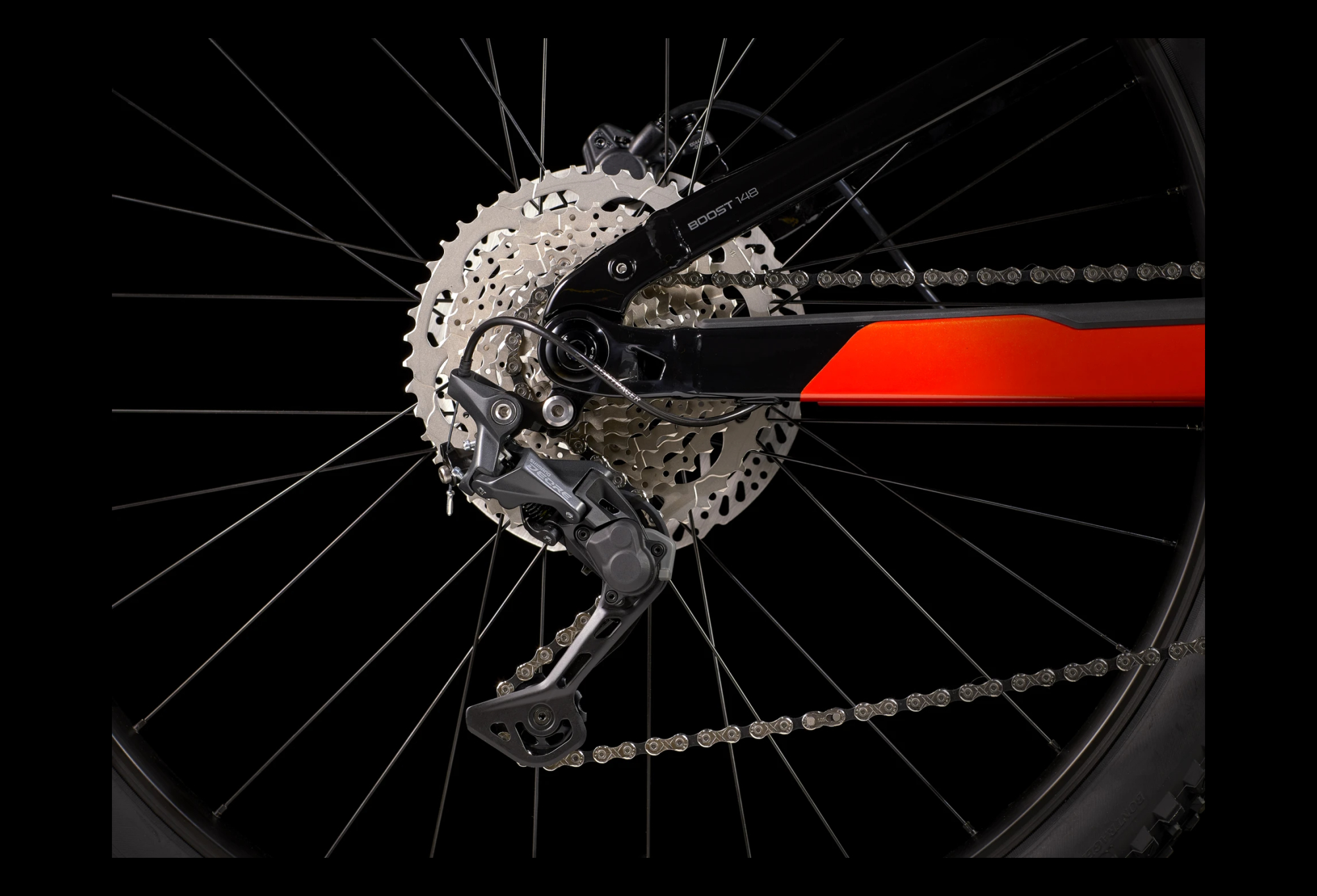 | Cadre | Aluminium : Aluminium Alpha Platinum, Batterie intégrée amovible (RIB), tube de direction conique, acheminement interne des câbles, Motor Armor, basculeur, fixations de porte-bagages et garde-boue, APB, Boost148, débattement de 100 mm |