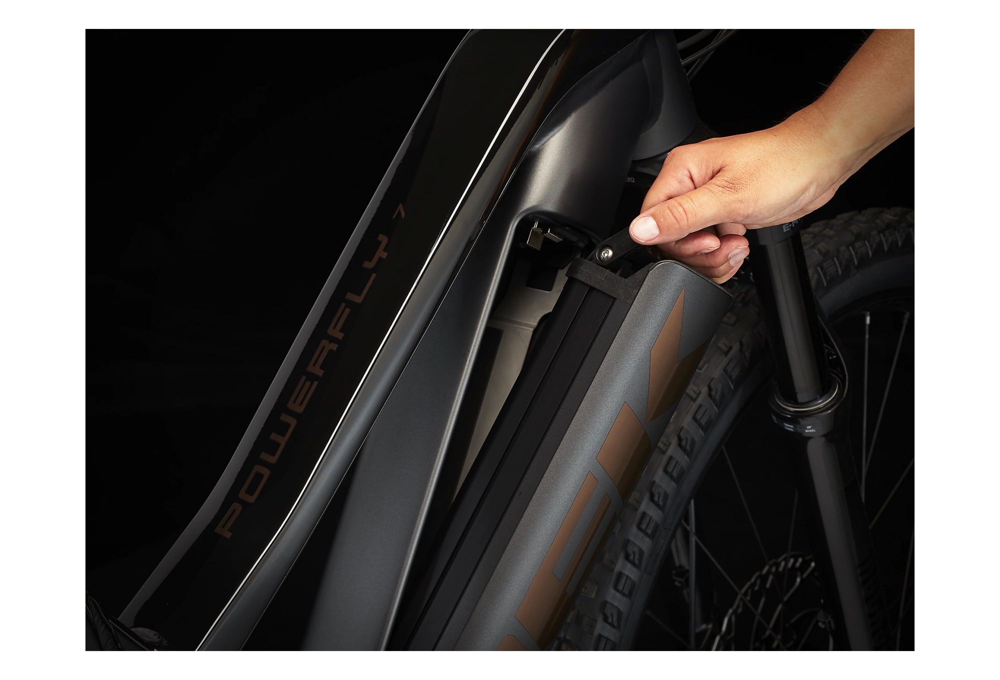 • Le système de batterie intégrée amovible de Trek affiche un look remarquable et est on ne peut plus convivial : il dissimule complètement la batterie dans le cadre afin de la protéger, il permet de déposer aisément la batterie sans outillage et laisse de l’espace pour la fixation d’un porte-bidon, même sur un VTTAE tout suspendu.