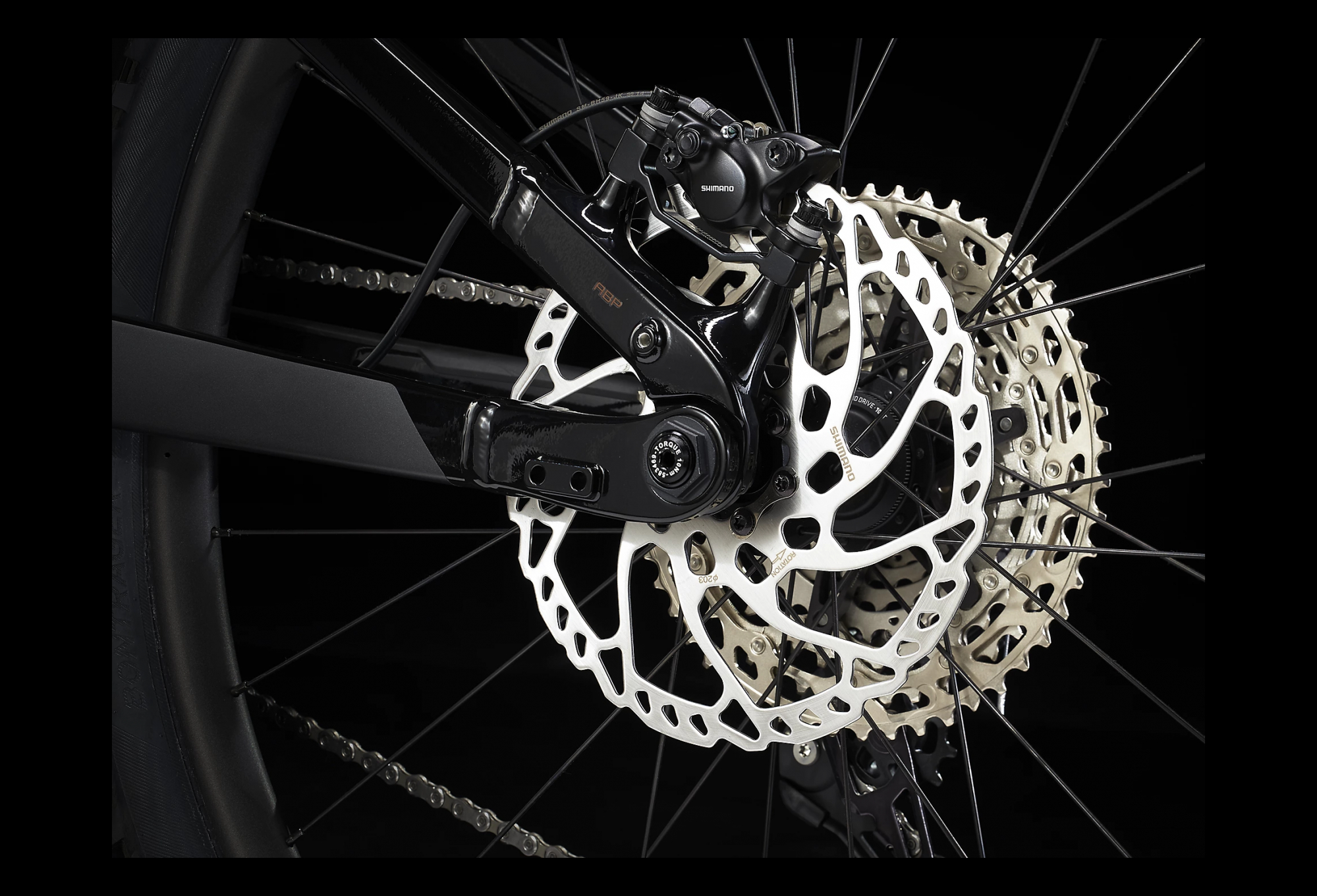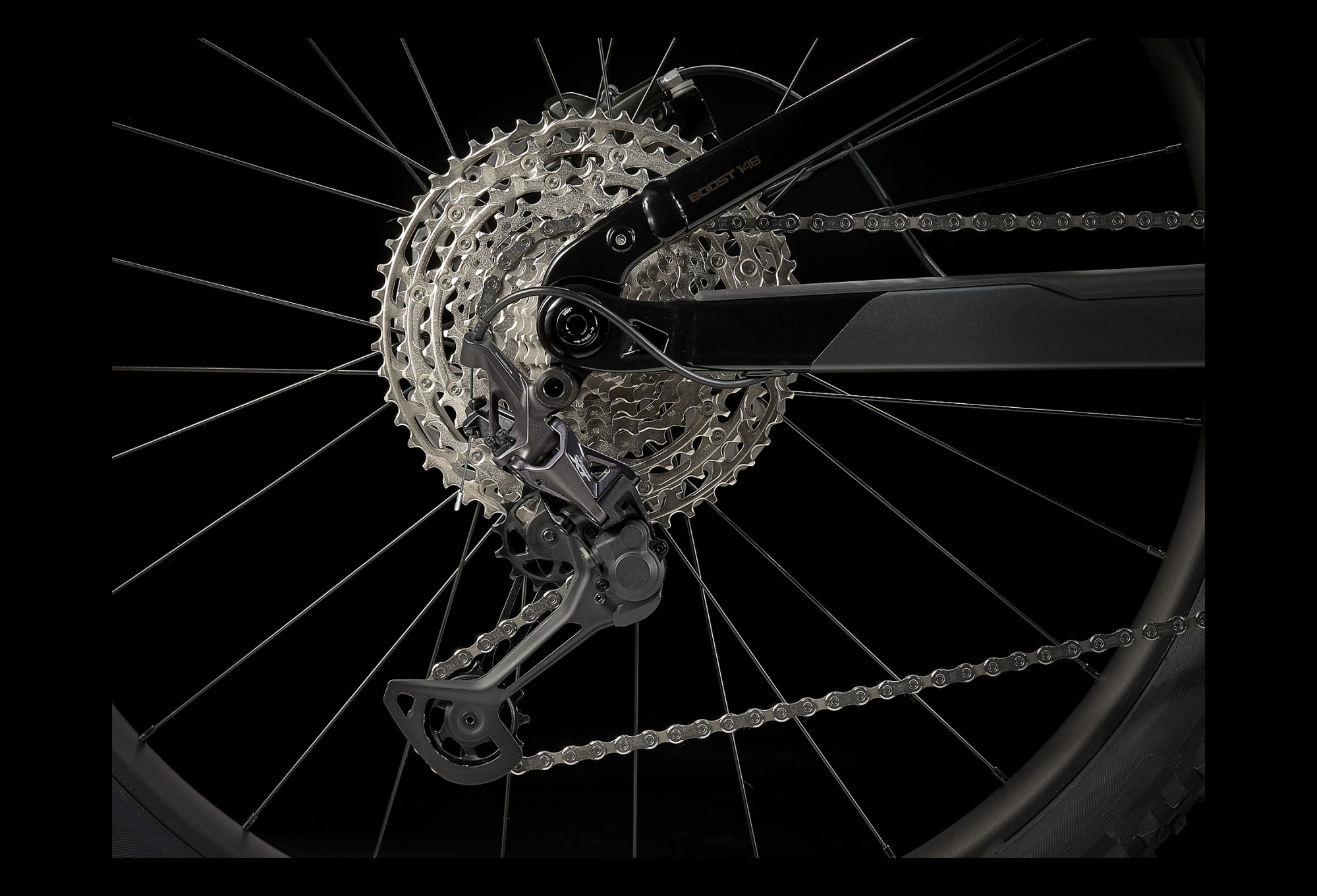 Arrière : Alu Bontrager, roulement étanche, 6 trous, corps de roue libre Shimano MicroSpline, Boost148, axe traversant 12 mm