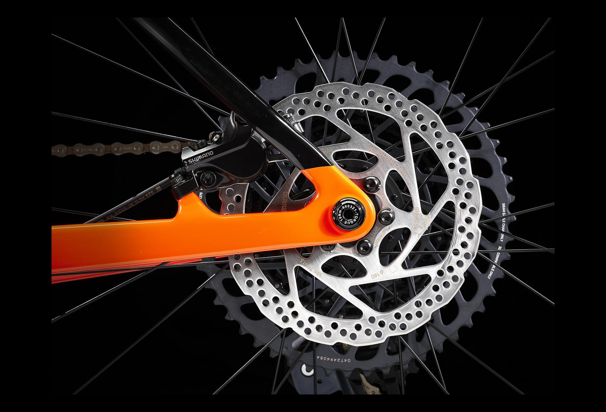Freins Shimano, disque hydrauliques, levier MT501, étrier MT500 / Rotors : Shimano RT56, 6 trous, 180/160 mm