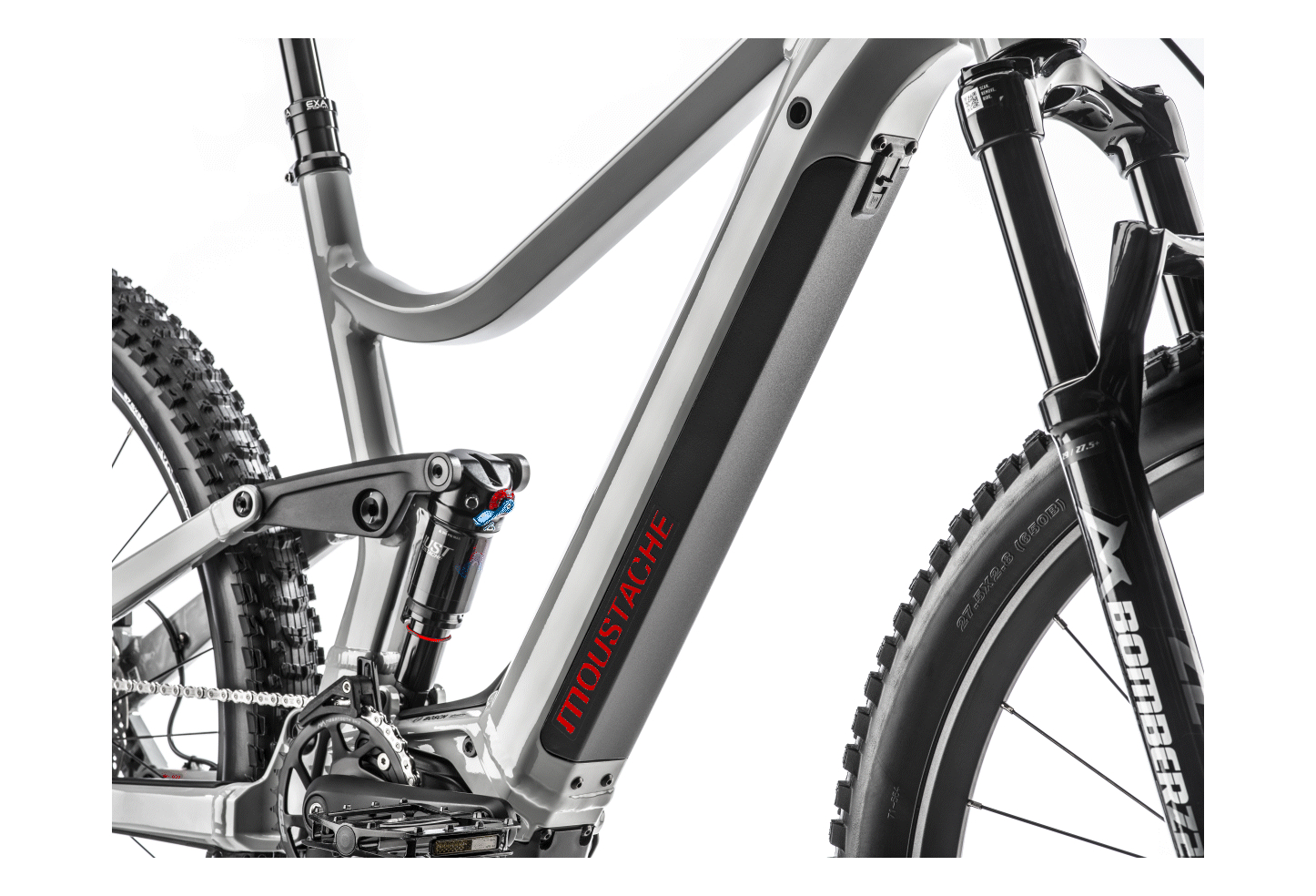 VTT ÉLECTRIQUE TOUT-SUSPENDU MOUSTACHE BIKES SAMEDI 27 WIDE 5 SMART SYSTEM SHIMANO DEORE 12V 625 WH 27.5 » GRIS 2023