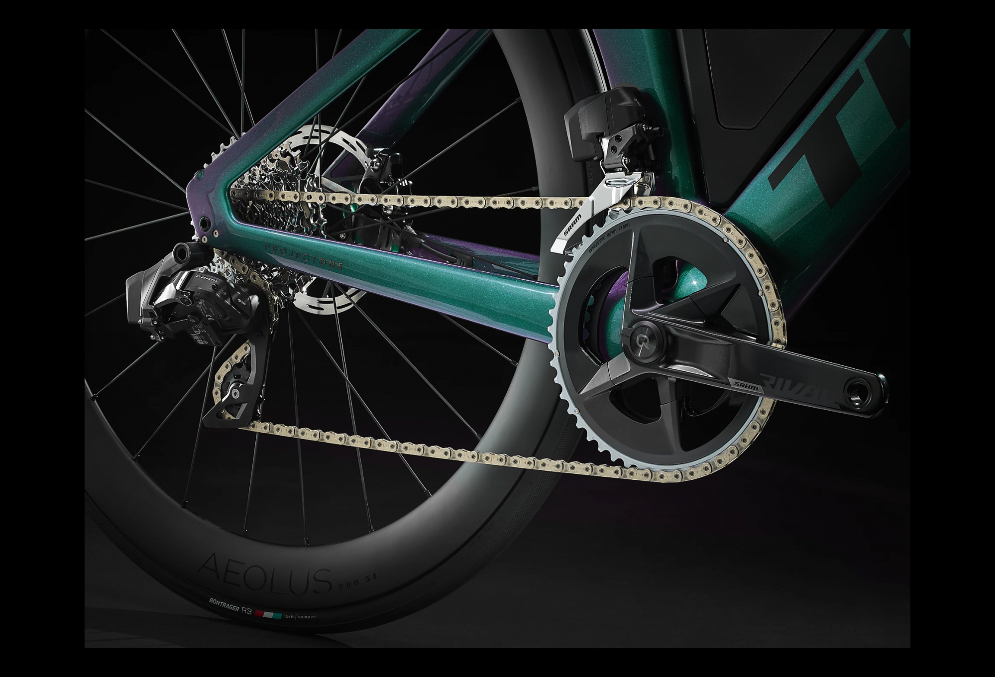 | Roues | Avant : Bontrager Aeolus Pro 51, carbone OCLV, Tubeless Ready, axe traversant 100×12 mm / Arrière : Bontrager Aeolus Pro 51, carbone OCLV, Tubeless Ready, corps de roue libre SRAM XD-R, axe traversant 142×12 mm |