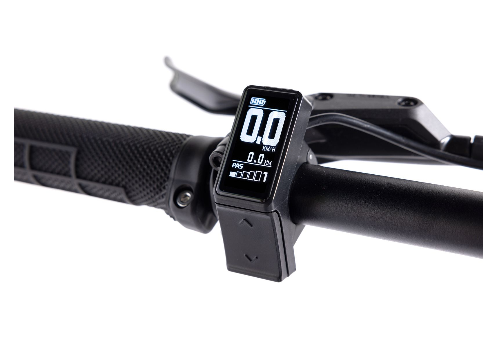 | Display LCD | Le display LCD, installé sur le guidon vous offre 5 niveaux d’assistance – Eco / Tour / Sport / Turbo / Boost – ainsi qu’un maximum d’informations comme : o Vitesse actuelle / vitesse moyenne / vitesse maximale o Distance totale et partielle (trip) o Temps d’utilisation o Capacité de la batterie o Niveaux d’assistance |