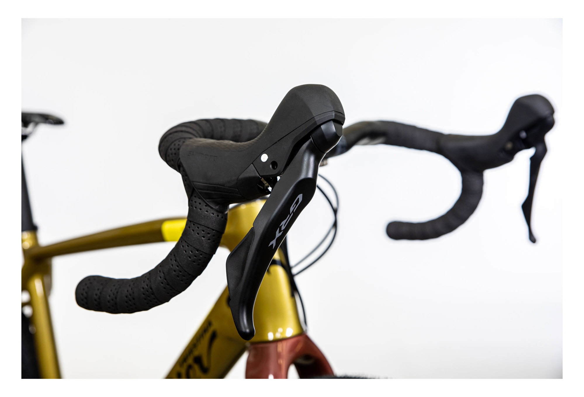 - Freins à disque hydrauliques Shimano GRX, 160/160 mm.
